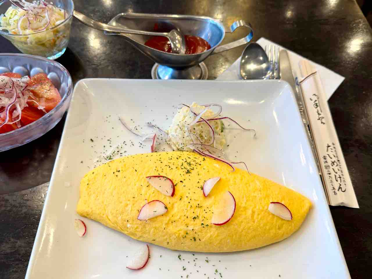 たいめいけんのオムレツって外側が少しパリッとしているんですね~。そして中はとろとろ~クリーミー。
