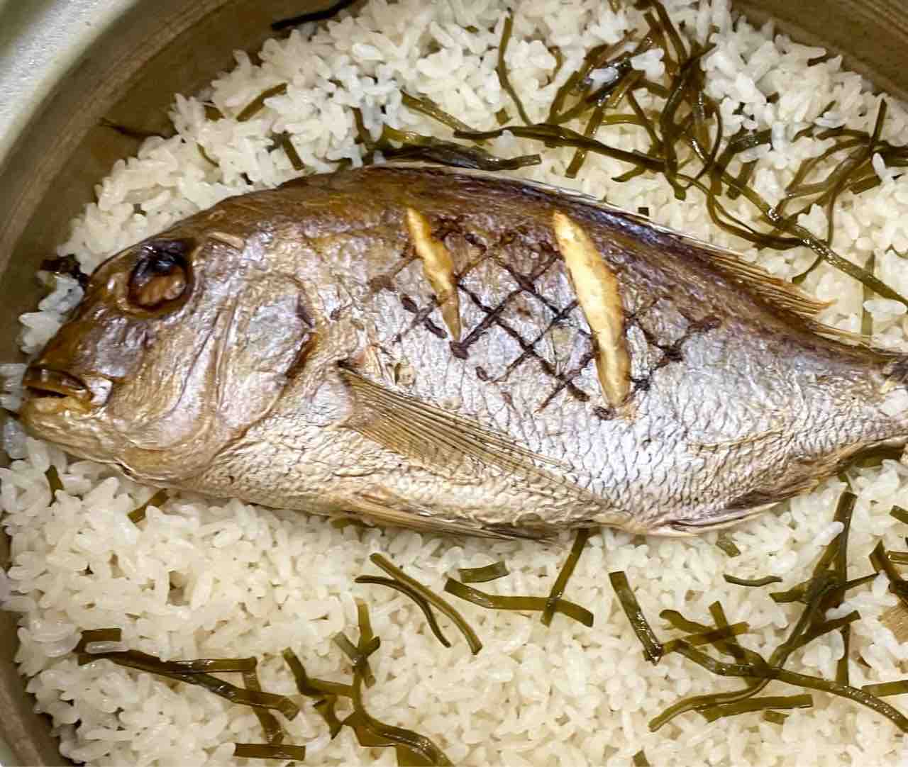 シメは、先日余った鯛めしを焼きおにぎり茶漬けにしました。