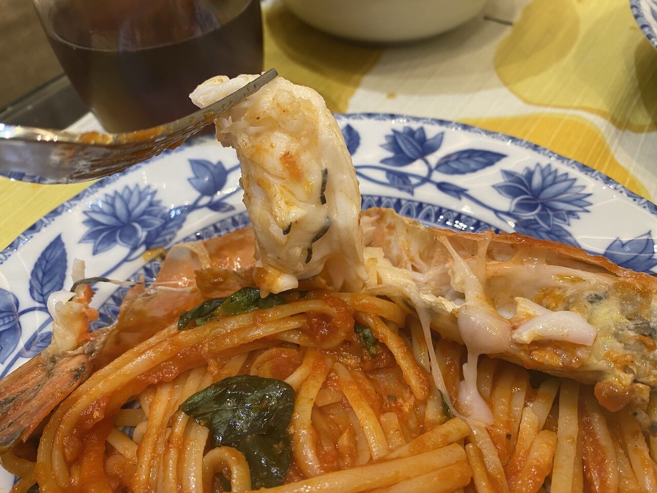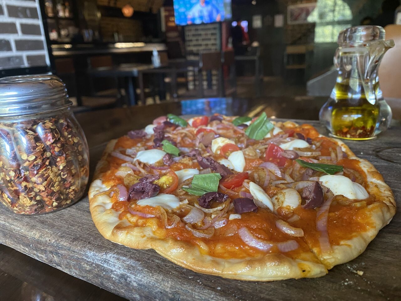 もう一品頼んだピザは、スパイスが効いていてインド側に針が触れていた。