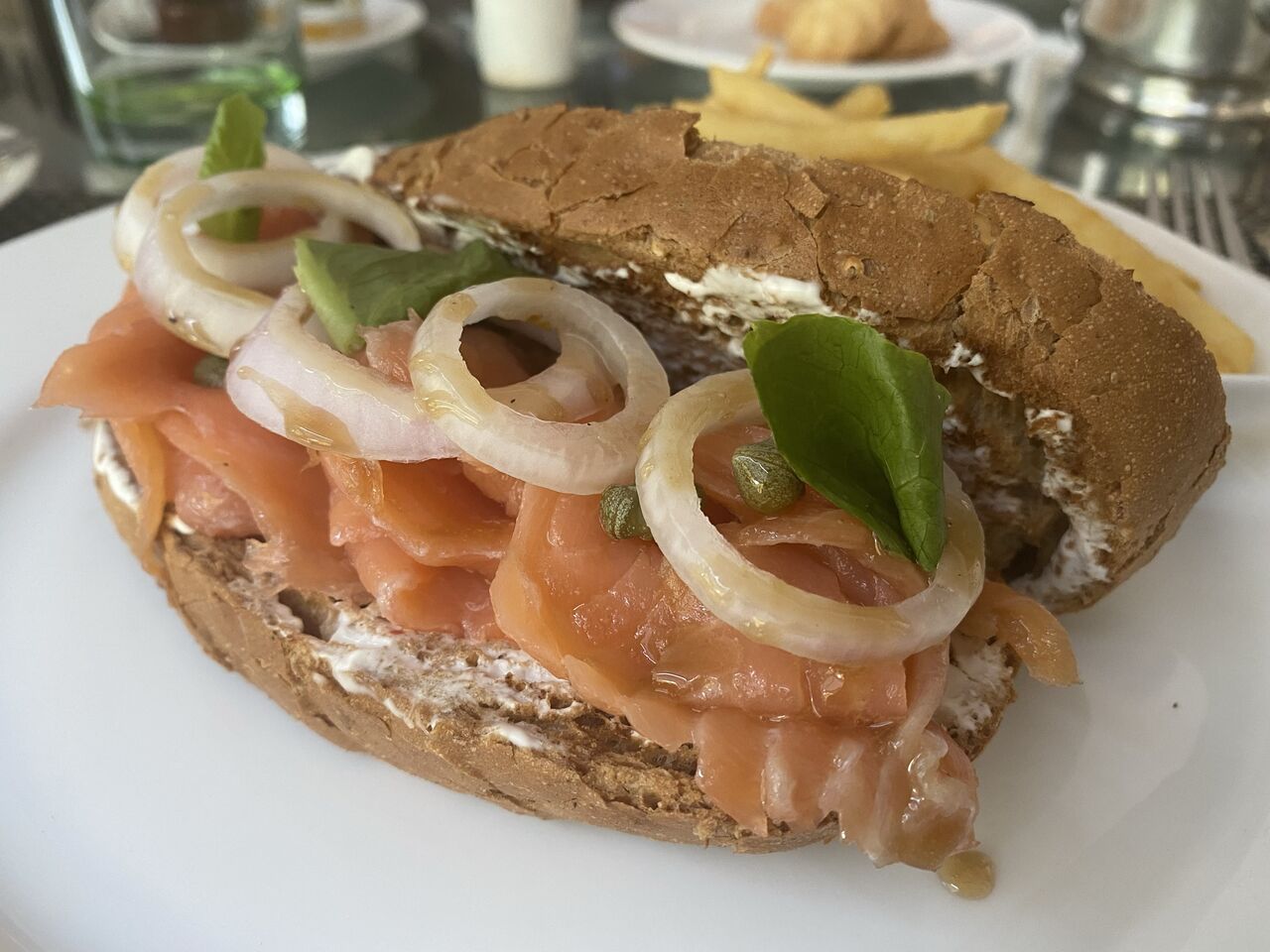 とはいえ、このスモークサーモンサンドイッチのように、私のように左党なヒトに優しい(甘くない)メニューもあります。