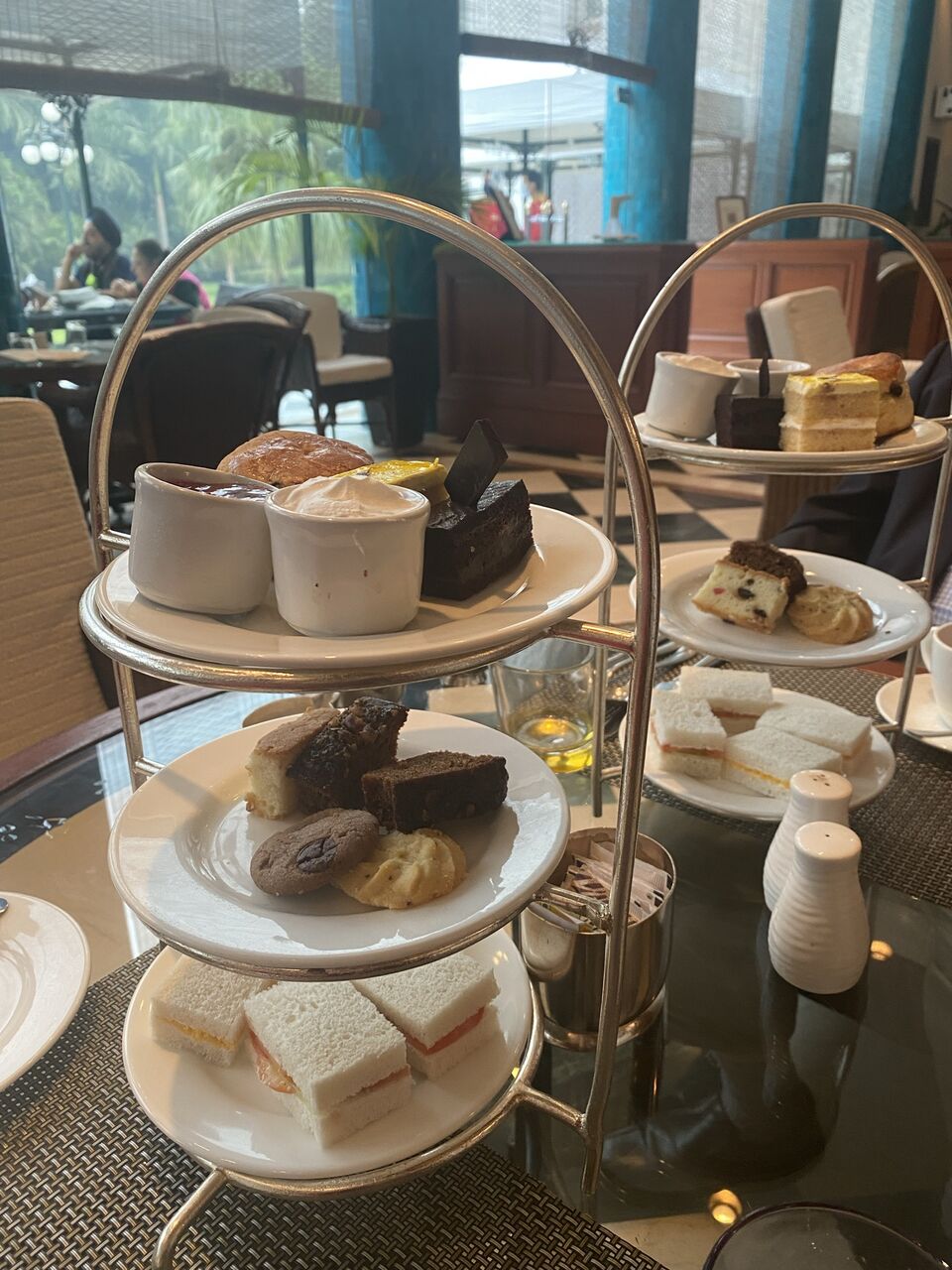 実はインペリアルのティーラウンジは二度目、先週も来たのです😅。いきなり行ったら、ハイティは、予約が必要と言われたので、その日はフツ~にお茶を頂きました。ハイティーの説明、予約案内をして下さった給仕さんは、慇懃ではないが誠実、柔らかい笑顔の方で、重い銀器で何度も注ぐサービスを(これです!これがインドの贅沢の一つ)、気持ちよくしてくださいました。そこで、彼との信頼も築くべく、一昨日、再チャレンジ。威を正して行ってきました。
