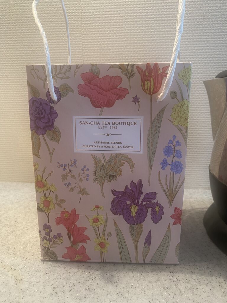 と、店員さんは仰り、上画像のトゥルシー入りホワイトティを紹介してくださいました。試飲すると、淡く繊細な味わいです。即決。これが好きそうな方の顔を思い浮かべ、購入しました。