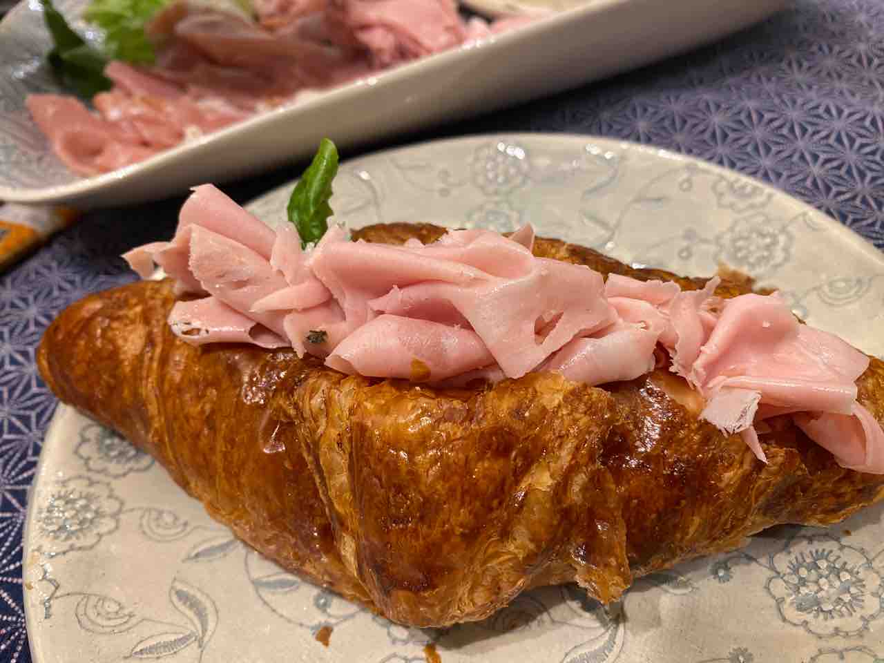 モルタデッラをなるべくボローニャで食べた感覚に近い形で、夫に食べてもらいたかったので、色々考えた結果、クロワッサンに挟むことにしました。