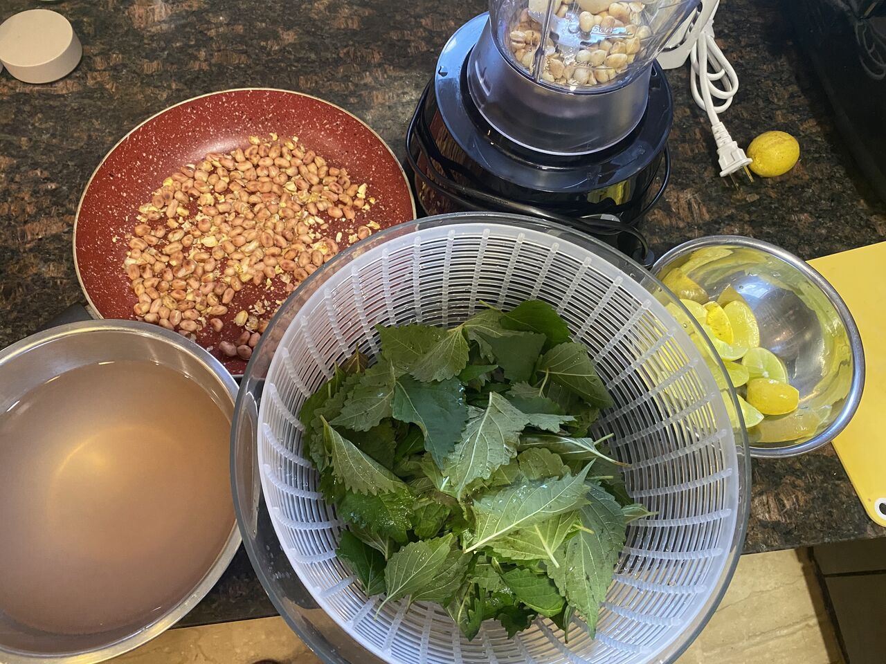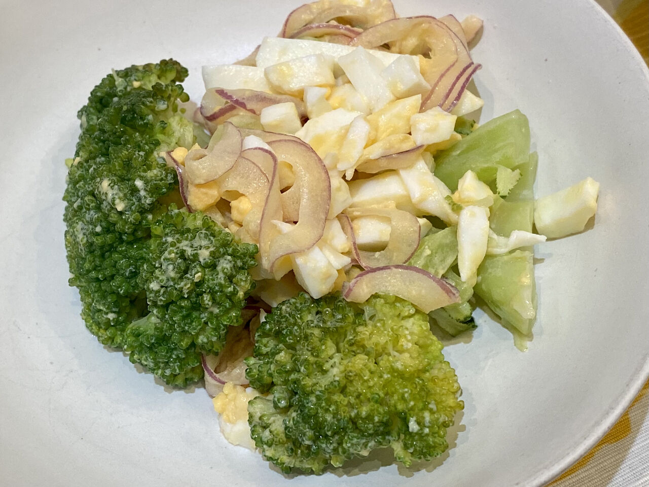お手伝いさんが、私の古いハンカチにアイロンを当ててのせ、緑を置いてくれました。