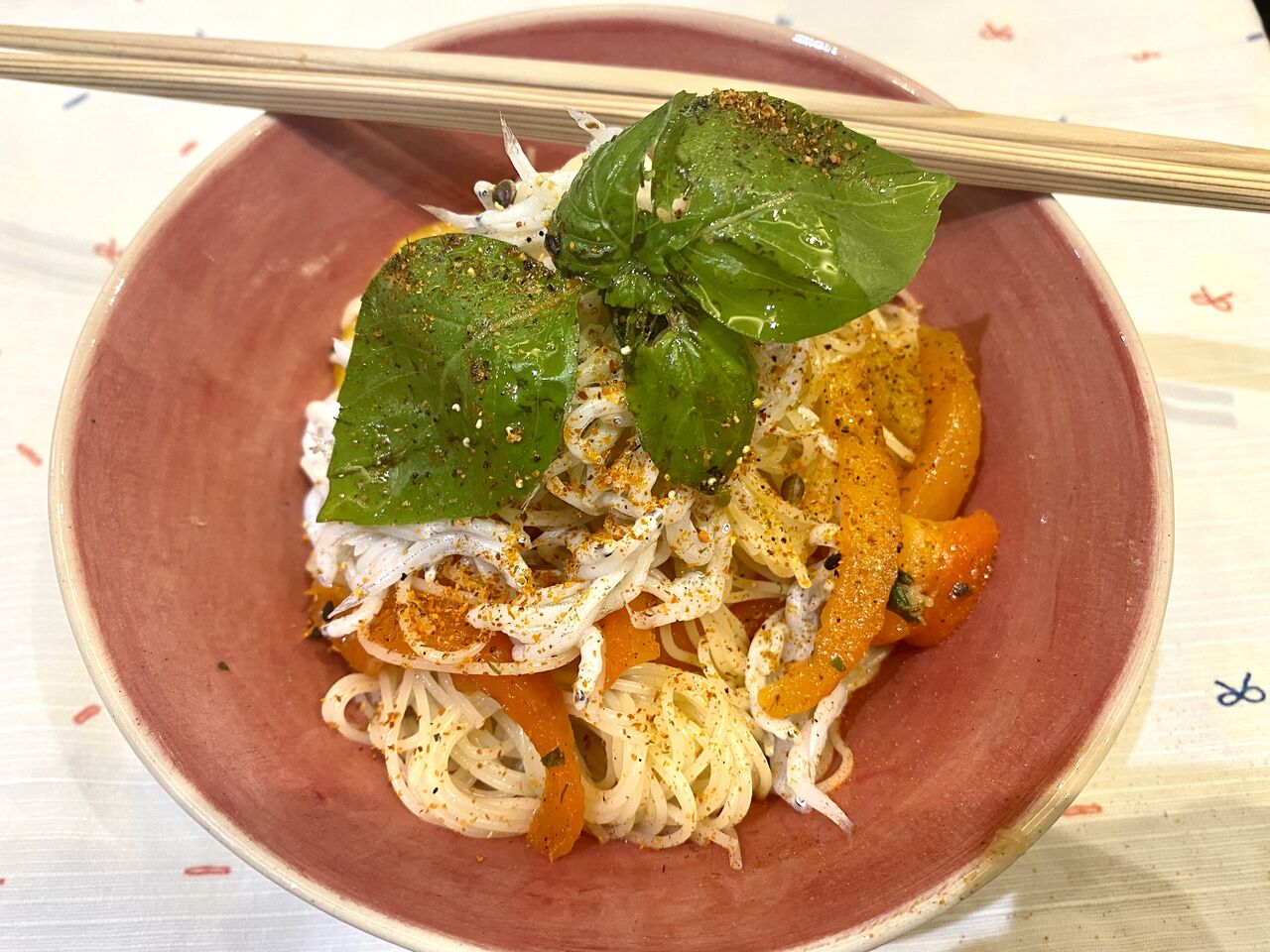 作っているうちに、ついマスタードの粒を入れたくなり、入れてしまい😅、すると、仕上げに硫黄の香りのするチャート・マサラをかける気分になったのですが、夫がそんな私にストップをかけました。蓮根餅は、和風塩で食べたいそうです。びっくり新作誕生のチャンスだったのにナア😆。