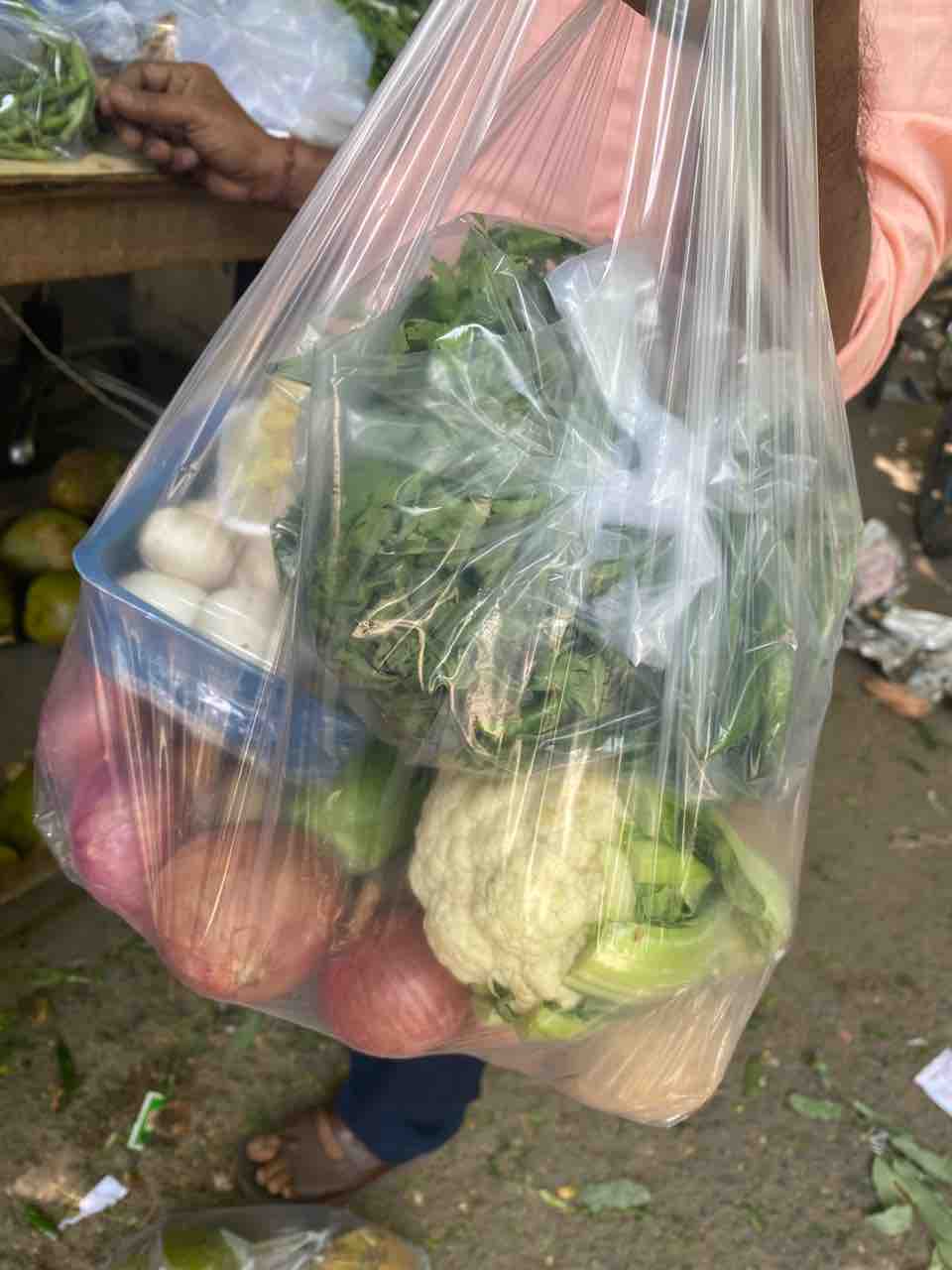 ジャガイモ・玉ねぎそれぞれ一キロ、マッシュルームやミニトマト、ブロッコリー、カリフラワー、ベビーコーンなどが入って、さていくらでしょう?