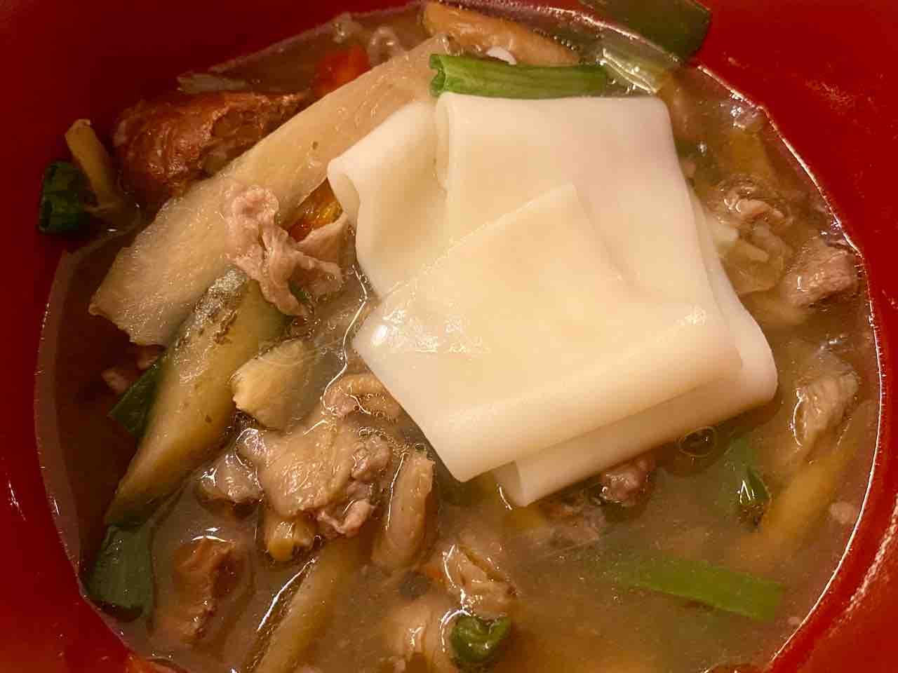 ピヤピヤっとしたひもかわうどんを、あったか肉つけ汁で☺️。