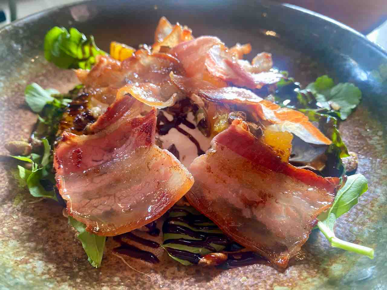ブッラータのカリカリベーコン、とろみバルサミコがけ、コレ良い~♪。