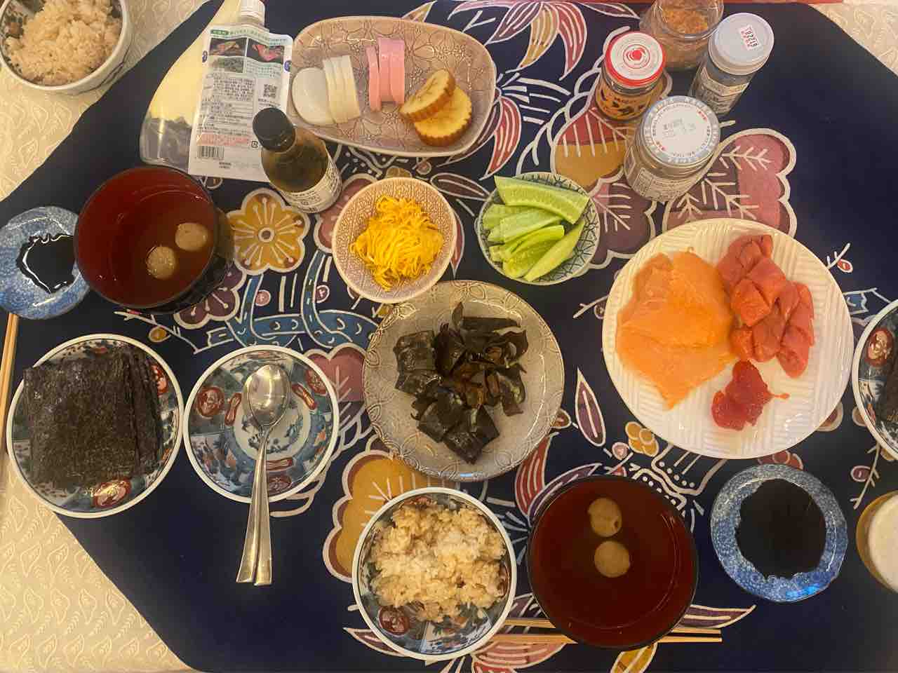帰宅後は、残り物でお好み手巻き寿司。