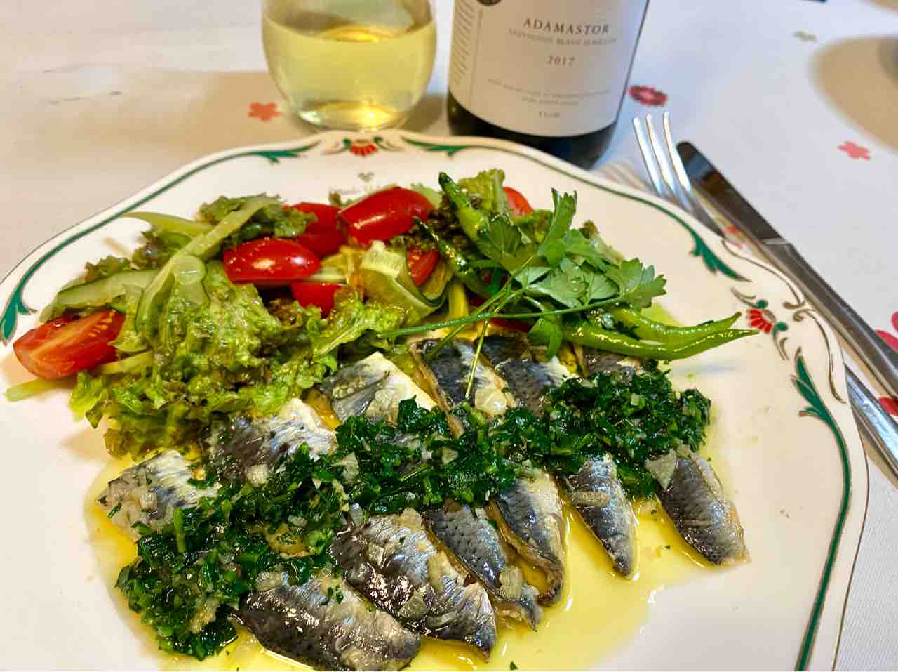 昨日は美味しいランチを戦友と頂いたので、軽い夕食。一昨日買った鰯の刺身を、サッとフライパンで焼き、炒めた後の油に刻みパセリを入れて軽く火を入れ、火を止めてから、ついていたわさびと混ぜ、すだちを絞ってソースにしました。