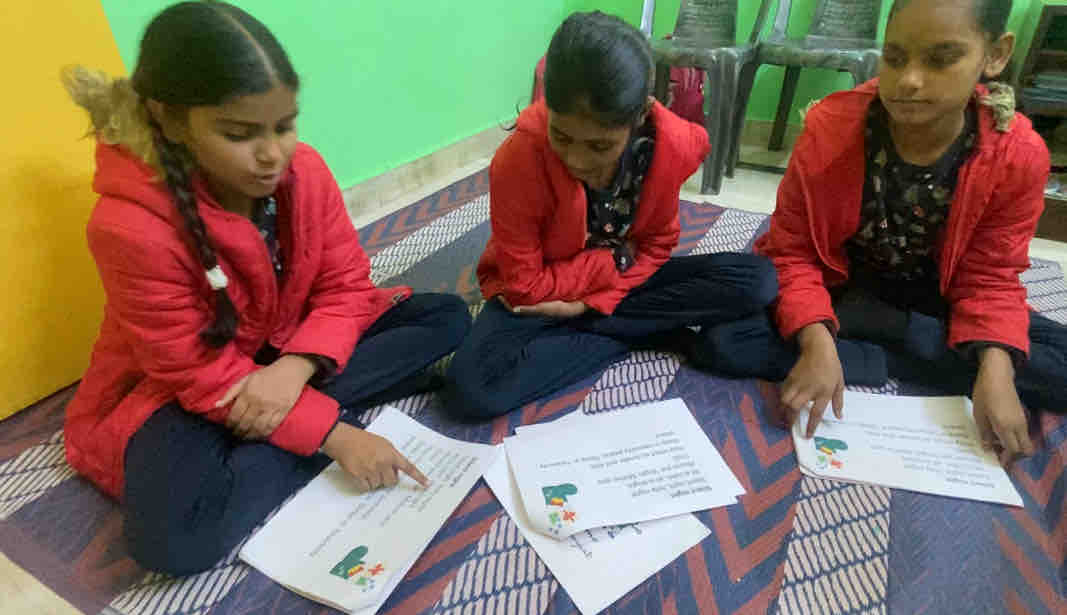 それを全く別の場所、「アーシャ・アジアの農民と歩む会」の自立支援の一環として、女性たちが縫っているのがブロックプリントの巾着。