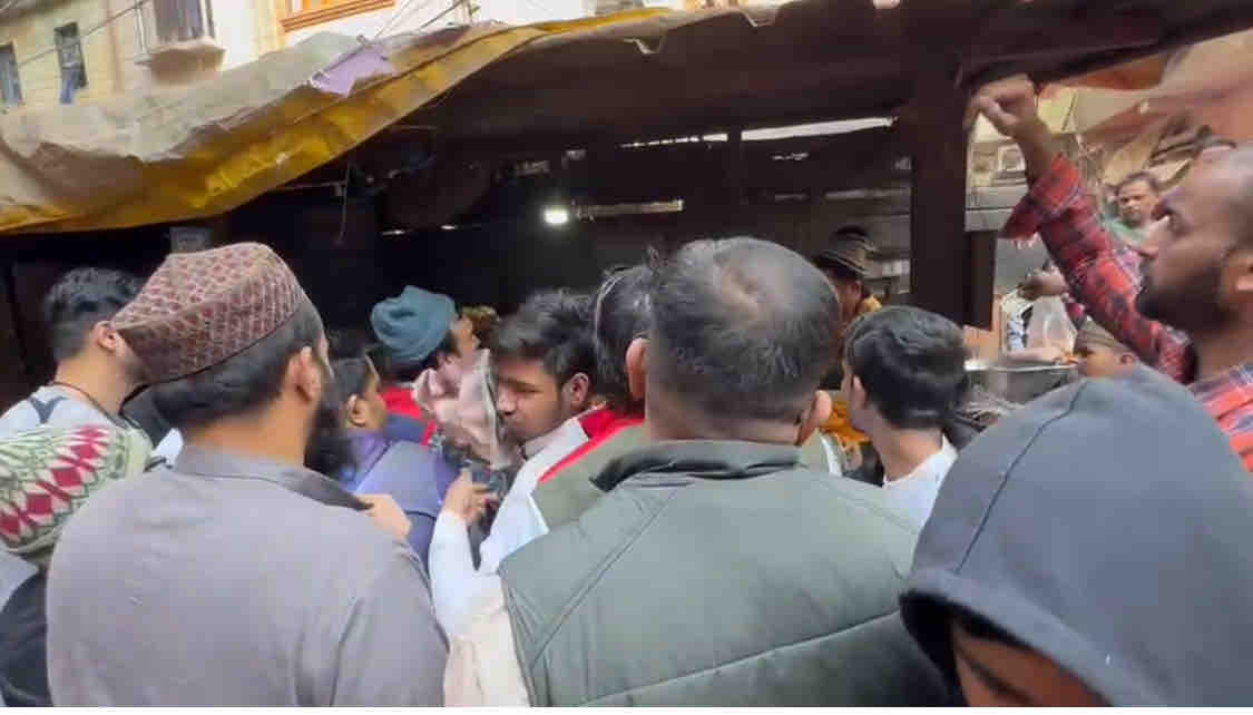 ツアー中突然、道を箒で掃く集団が!