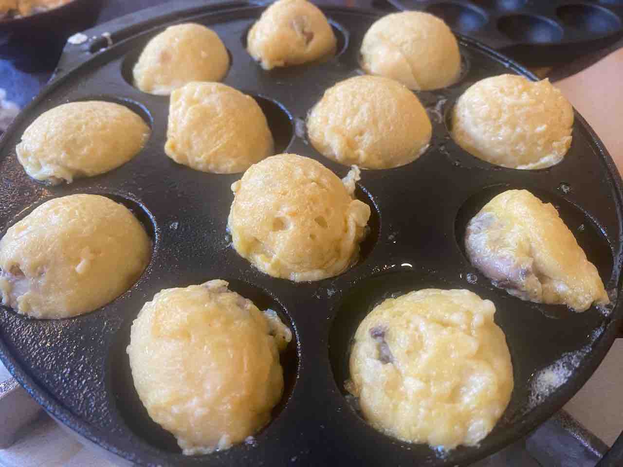 インドで買った分厚いたこ焼き鉄板を使って、ガスで焼いてみました。