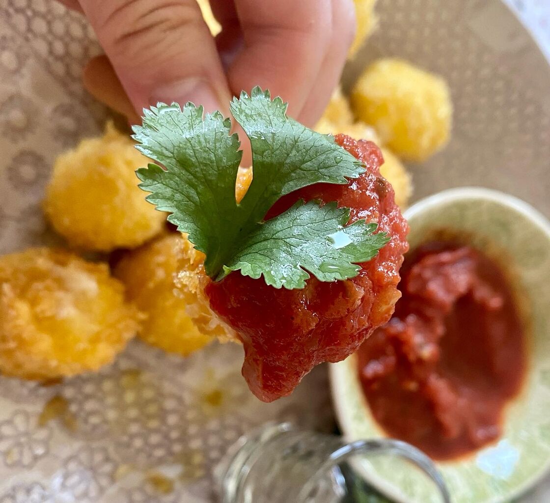 干しトマトの他に、瓶入りケーパー、黒オリーブ、すりおろしにんにく、紫蘇の葉が適当量入っています。味付けは、お好み量塩、ニンブー(インドのレモン)1個、オリーブオイルです。シラスを入れましたが、これはなくても良いと思うし、代わりにアサリの水煮缶も美味しいと思います。