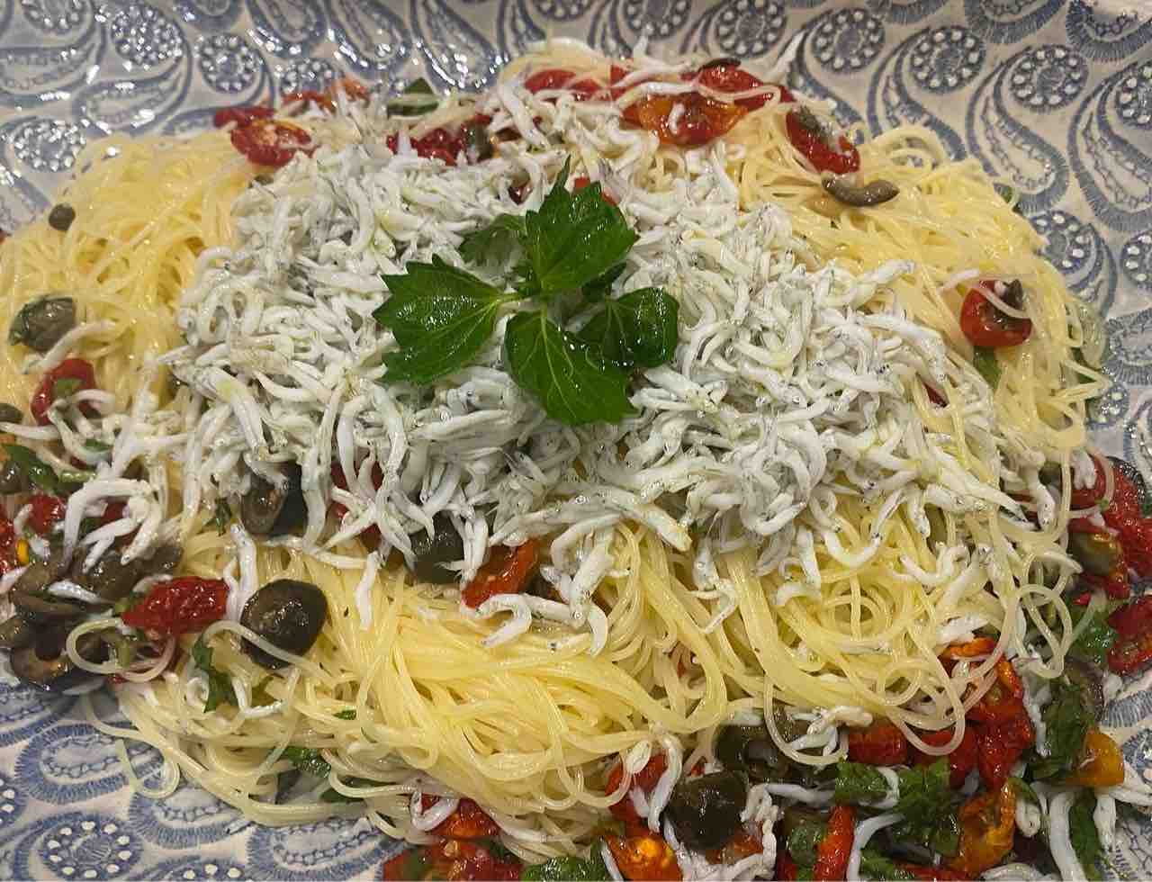 天日干しミニトマトと釜揚げしらすの冷スパ