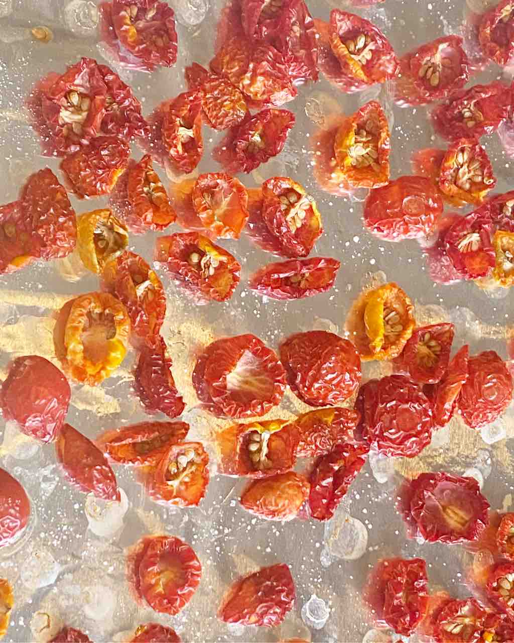 トマトは半分に切って軽く塩をしてから2日干しましたが、この時期なら、干し時間は、1日にして(朝干して、夕方使う)セミドライにした方が良い気がします。こちらもモーンスーンが来る前に試してみよう!