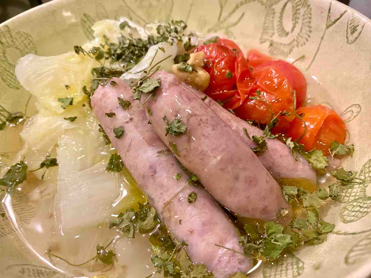 ソーセージは、小さい方が塩分控えめ。大きい方は、粗挽きで旨かった~♪。