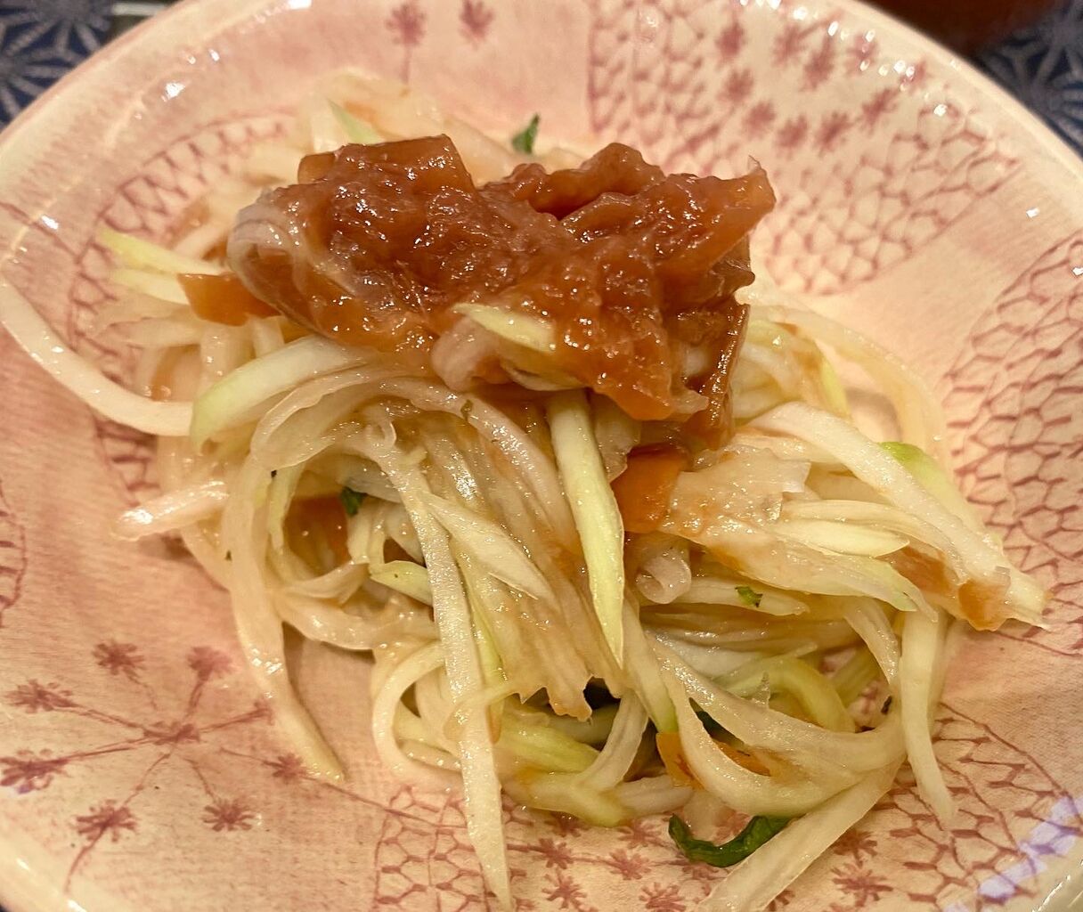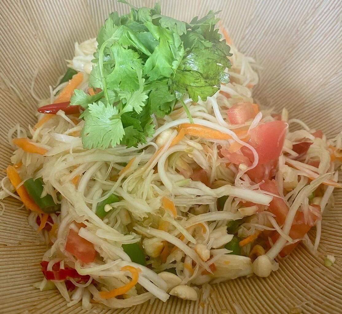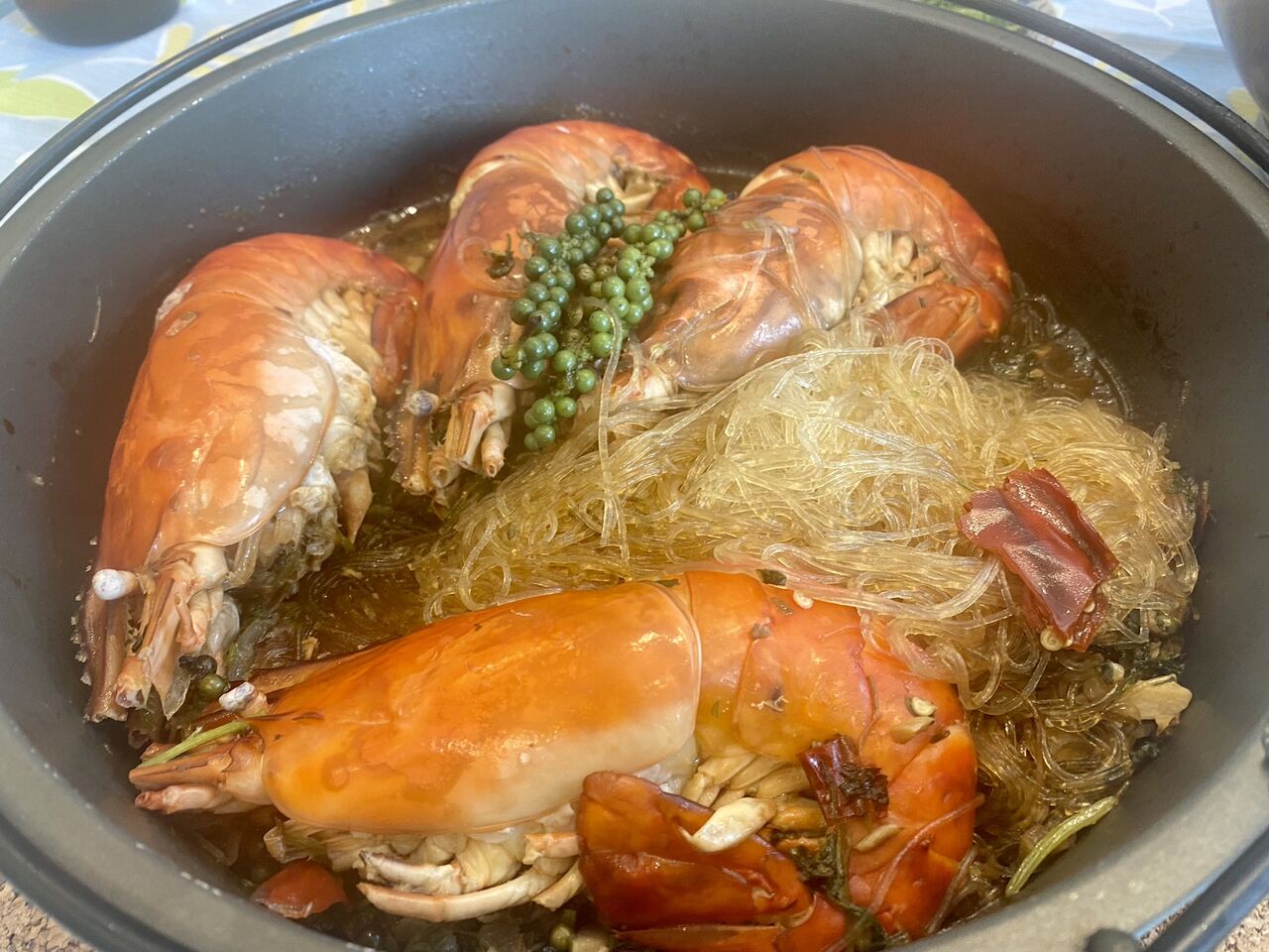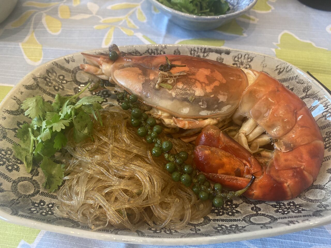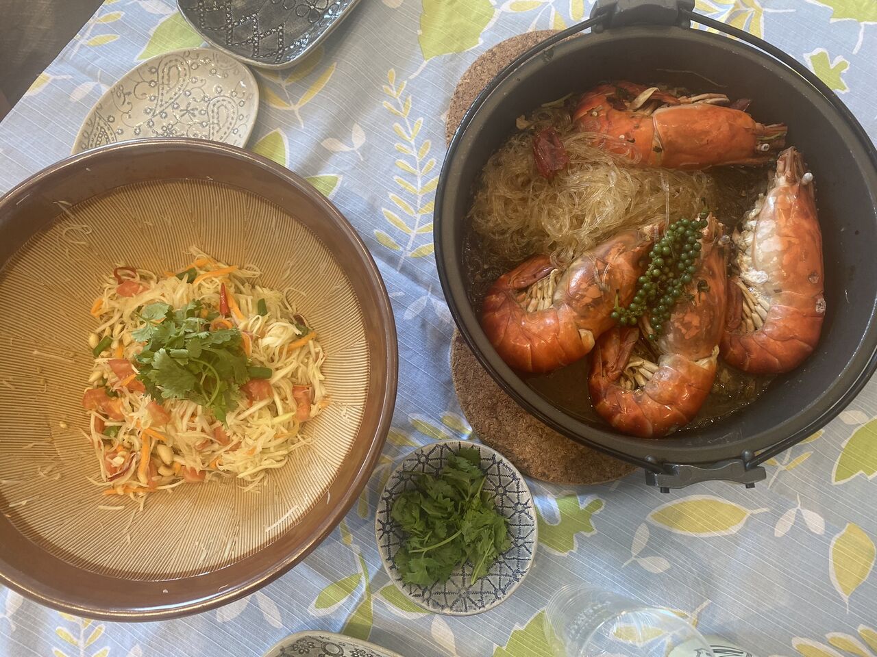 クンオップウンセン(海老と春雨の蒸し焼き)&ソムタム(青パパイヤサラダ)。