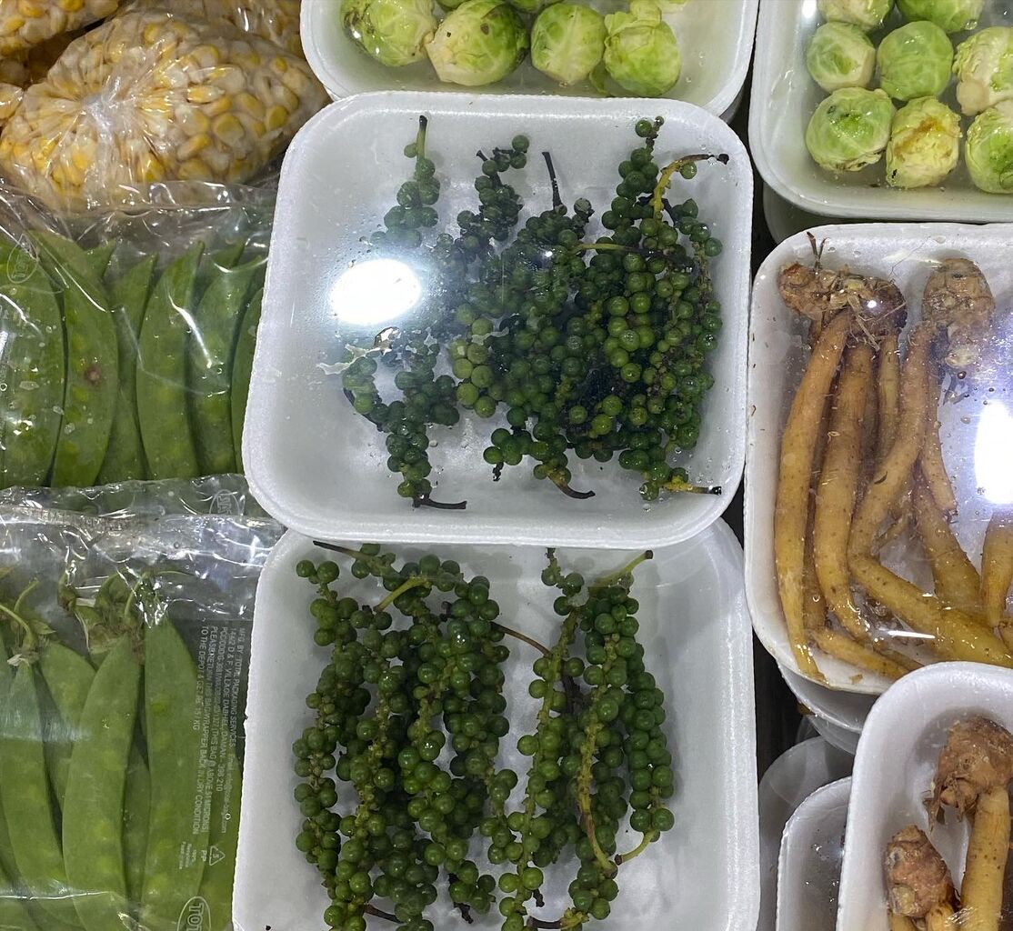INAにいったら、八百屋さんに生胡椒があったので即買い。