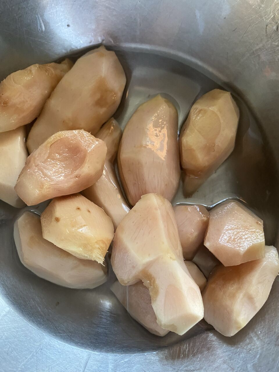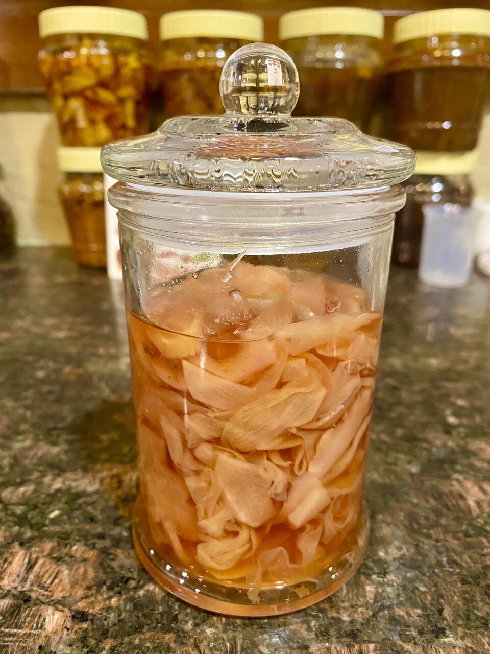 トマト・プロジェクトさんのアドバイスに従って、届けて頂いたお山の新生姜を使って生姜の甘酢漬けを作ってみました。