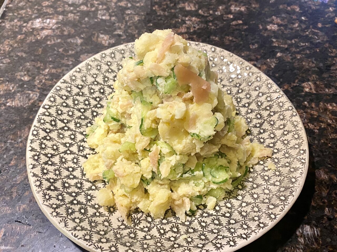 甘酢新生姜と塩揉み胡瓜のポテサラ