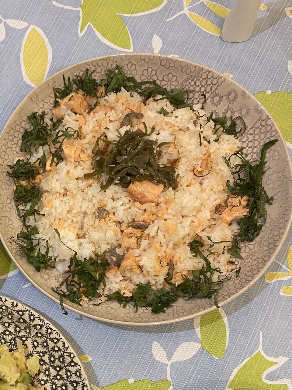 この日のご飯は、塩麹漬けサーモンの炊き込みご飯。