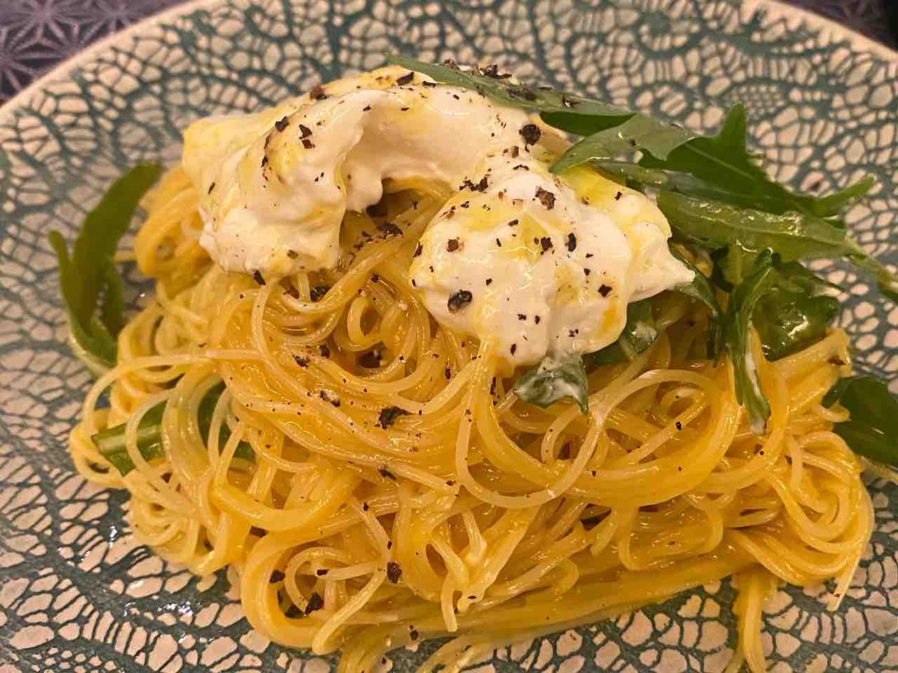 ソースの味見をした時、なんだか「ミルク感」を出した方が良いな~🤔と感じたので、インドのブッラータをのせのせ。