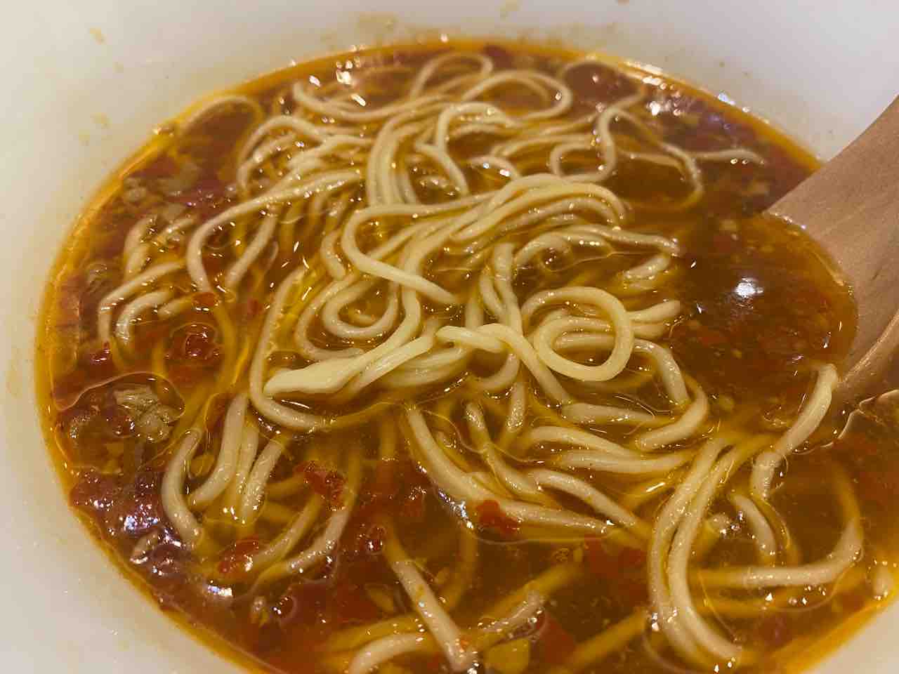 その後、持ち込みの一つ、名古屋「藤が丘味仙」のお取り寄せ「激辛台湾ラーメン」を、良人が作ってくれました。