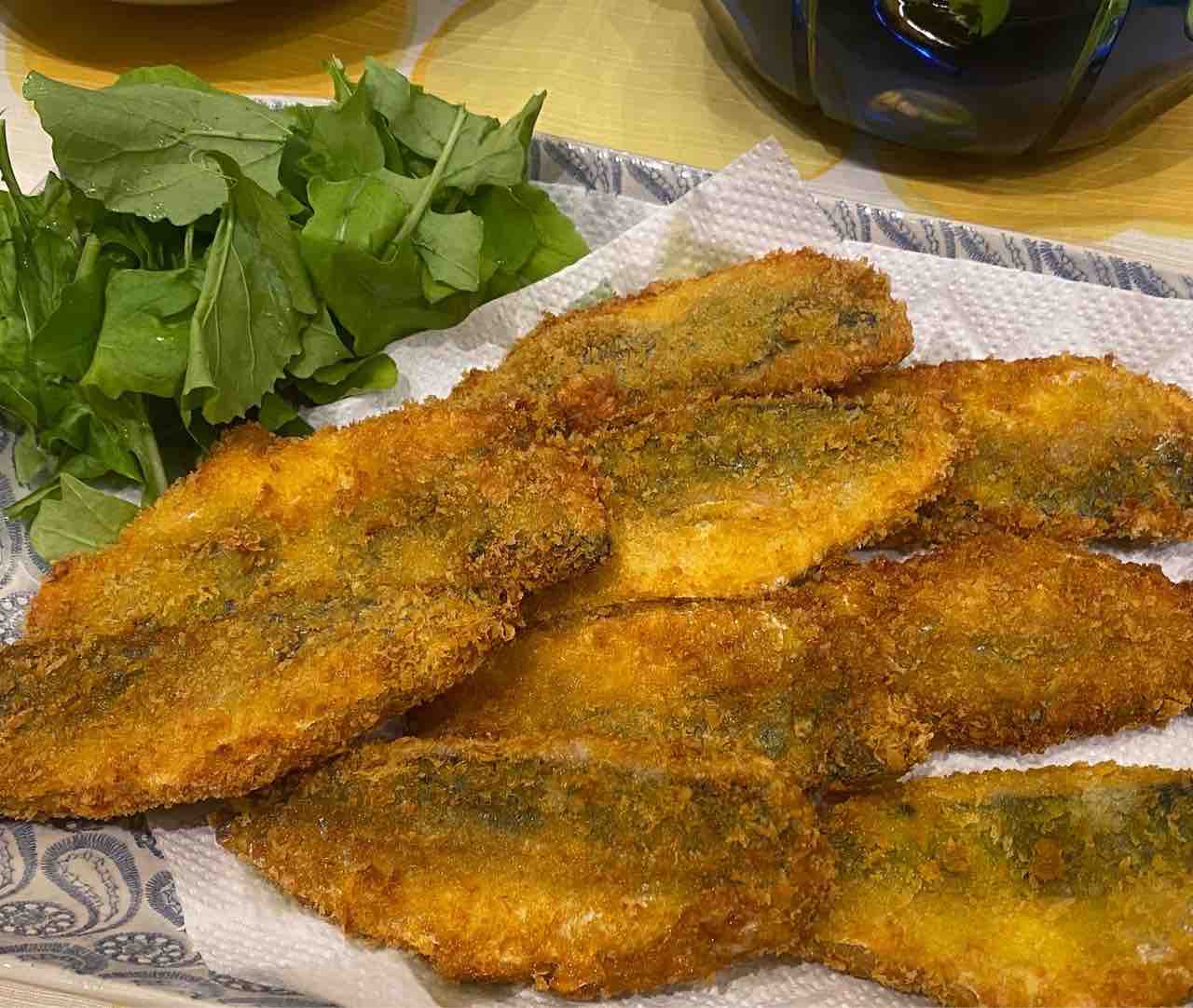 衣から、ちょっとモッツァレッラがはみ出る頃が仕上がり時、揚がり時。また、衣が割れても気にしない、気にしない。ジョルジョさんも台所でそれを食べて、