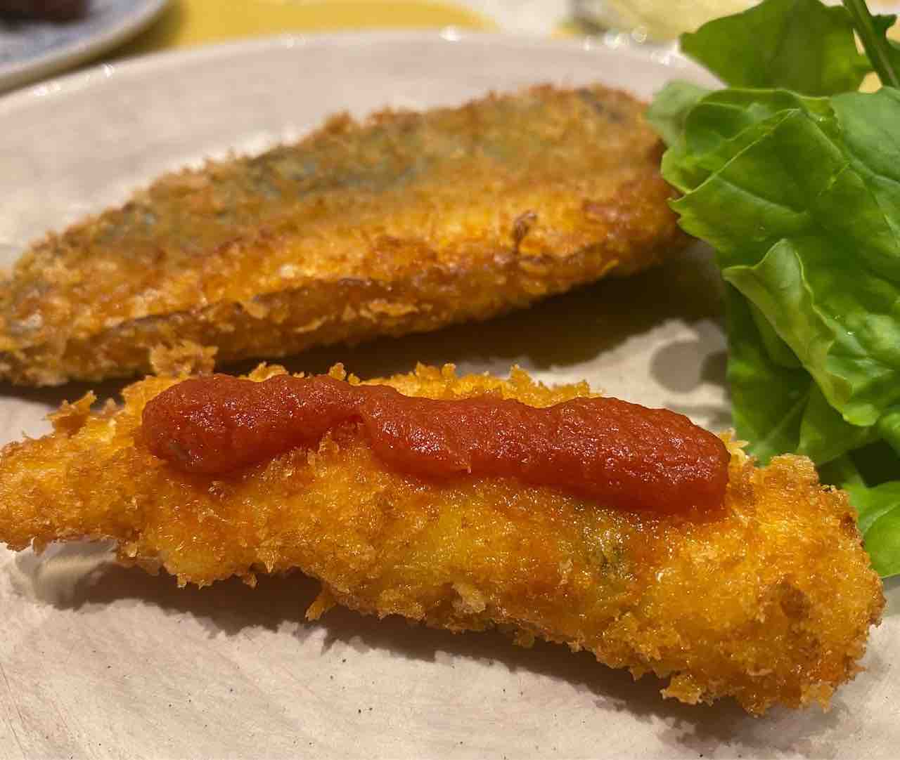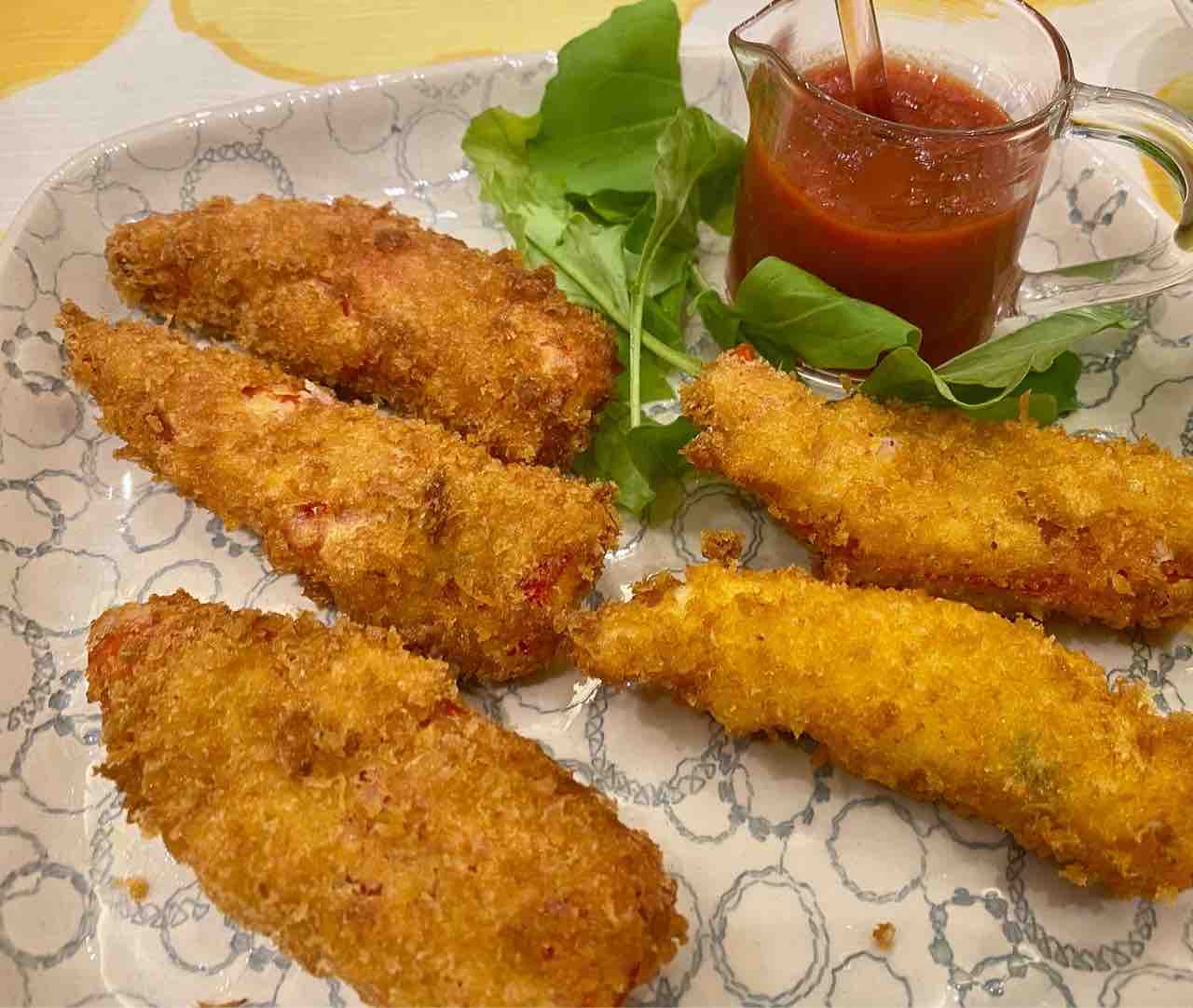 と言って紹介されていた、お料理。モッツァレッラをフツーにフライにするだけです。