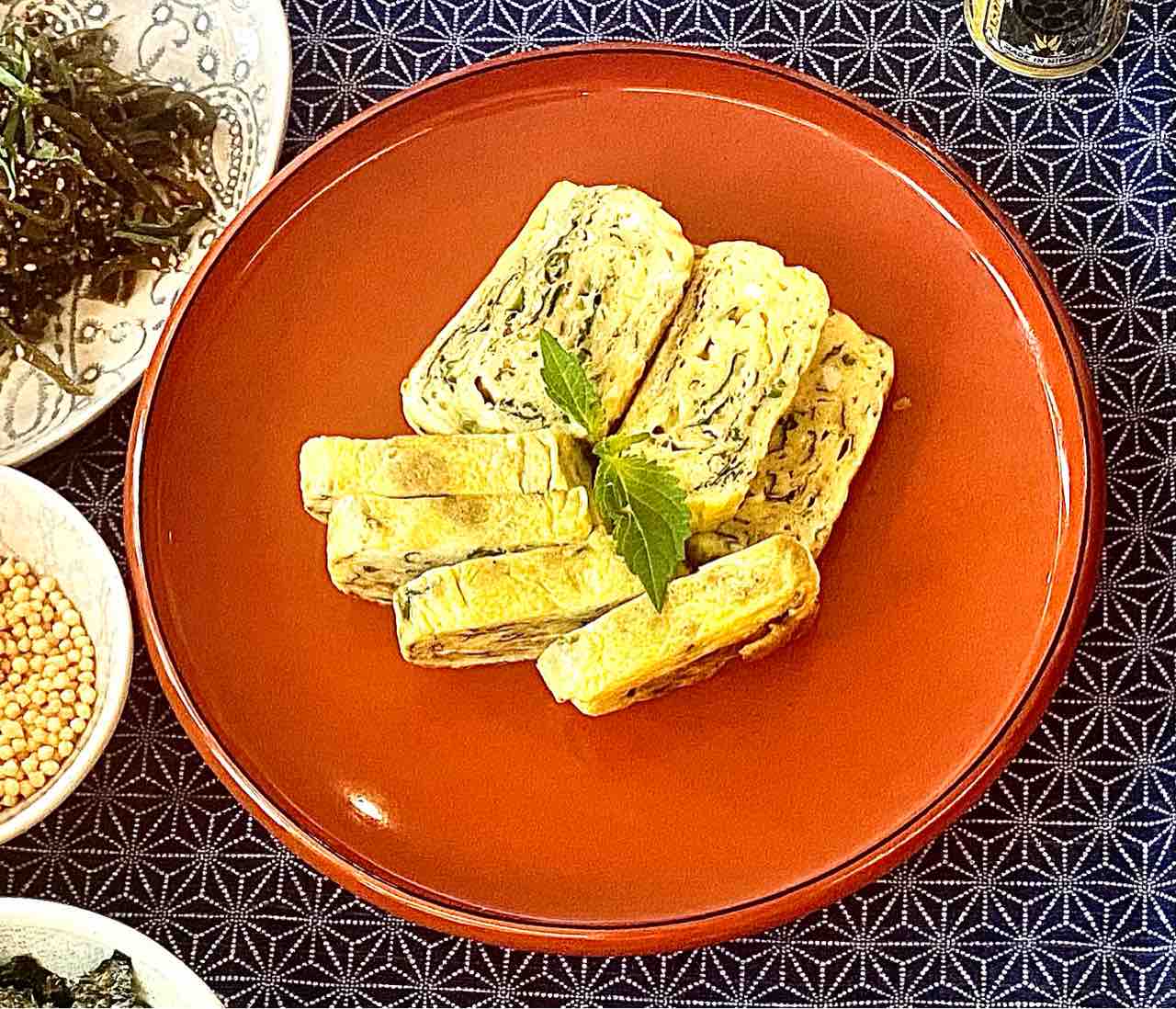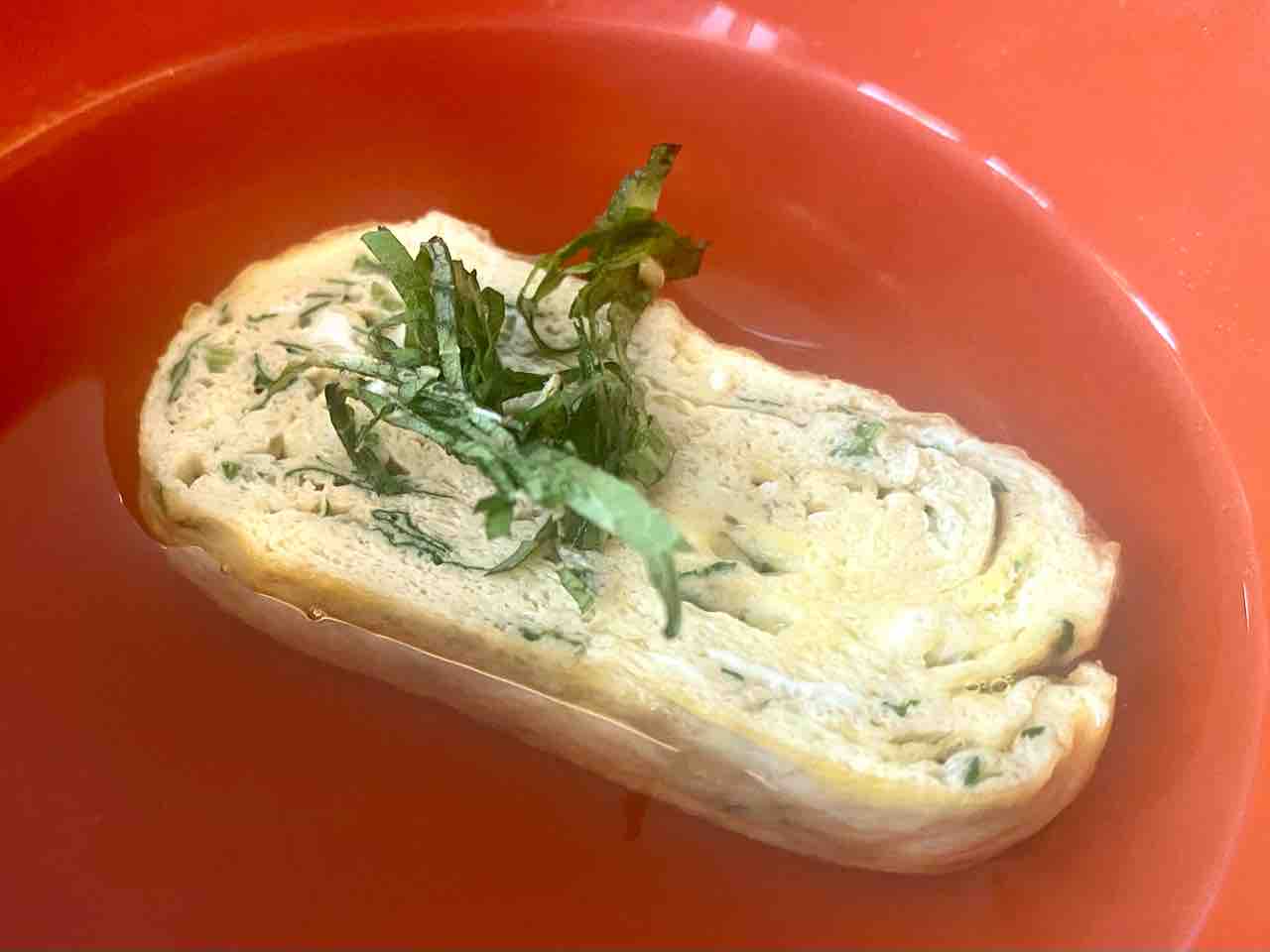 卵焼き自体の塩分を減らし、つけ麺風に、出汁につけながらだし巻き卵を食べる。