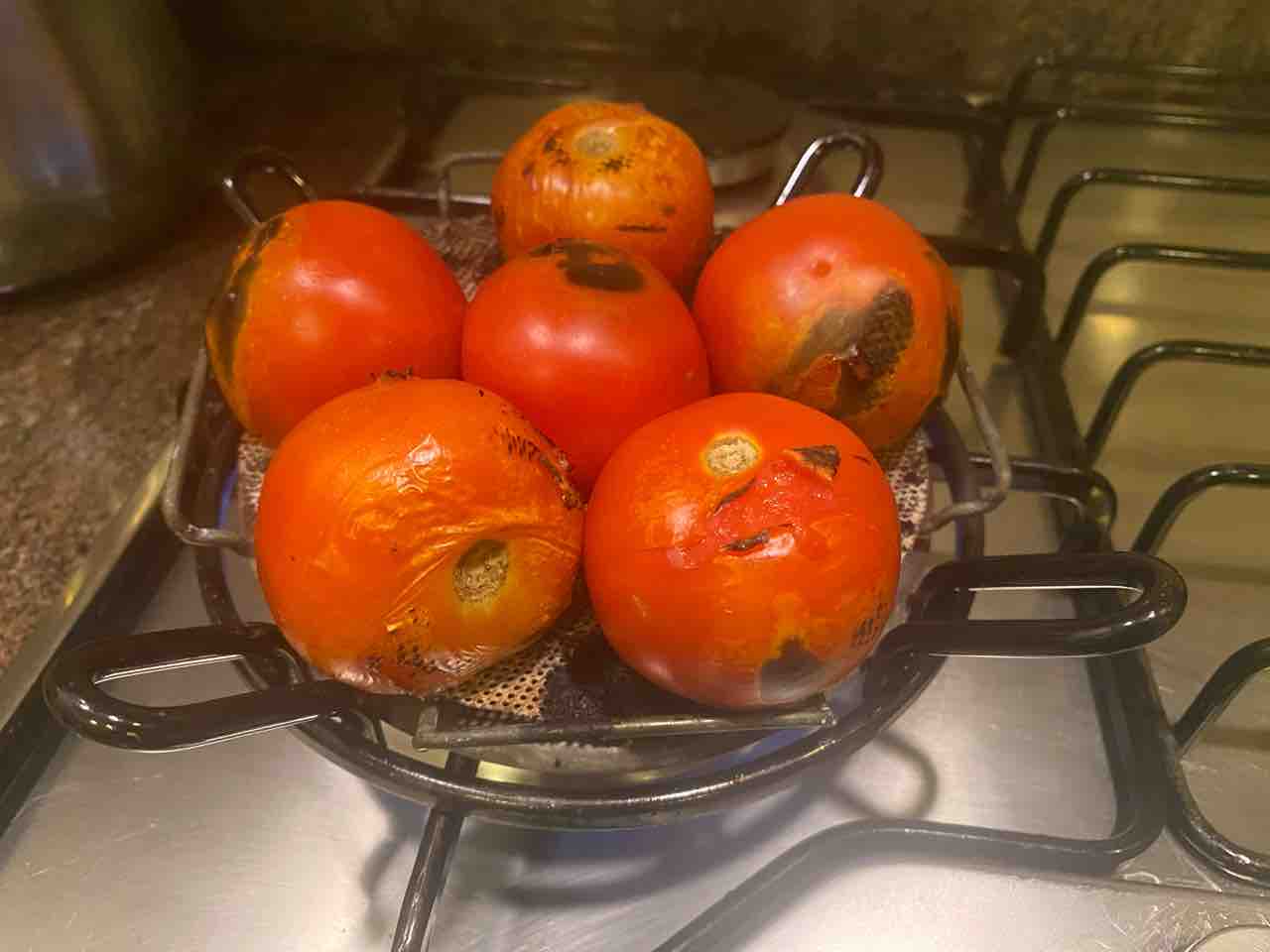 トマトを直火で軽く焼いて水中皮剥き、