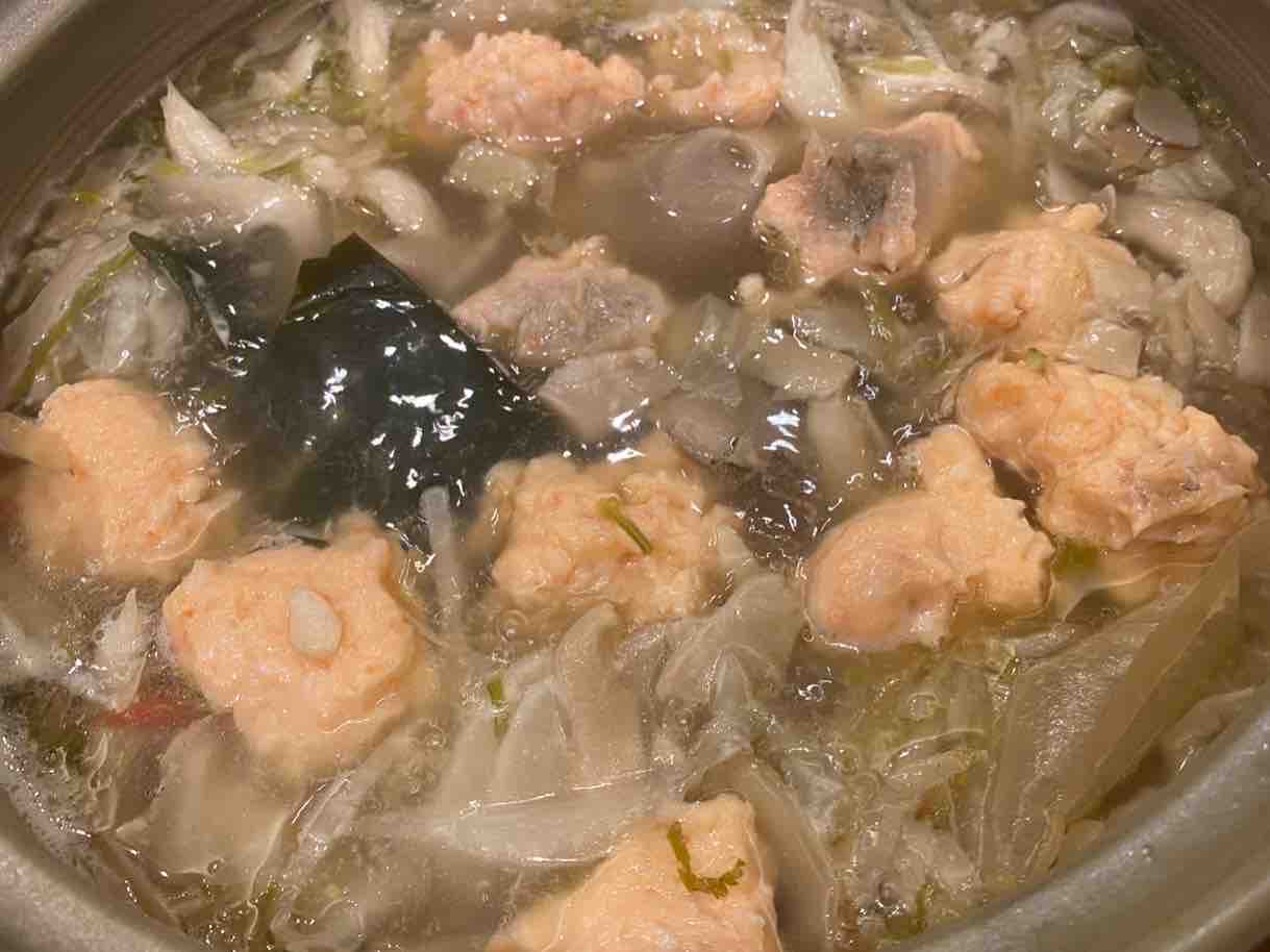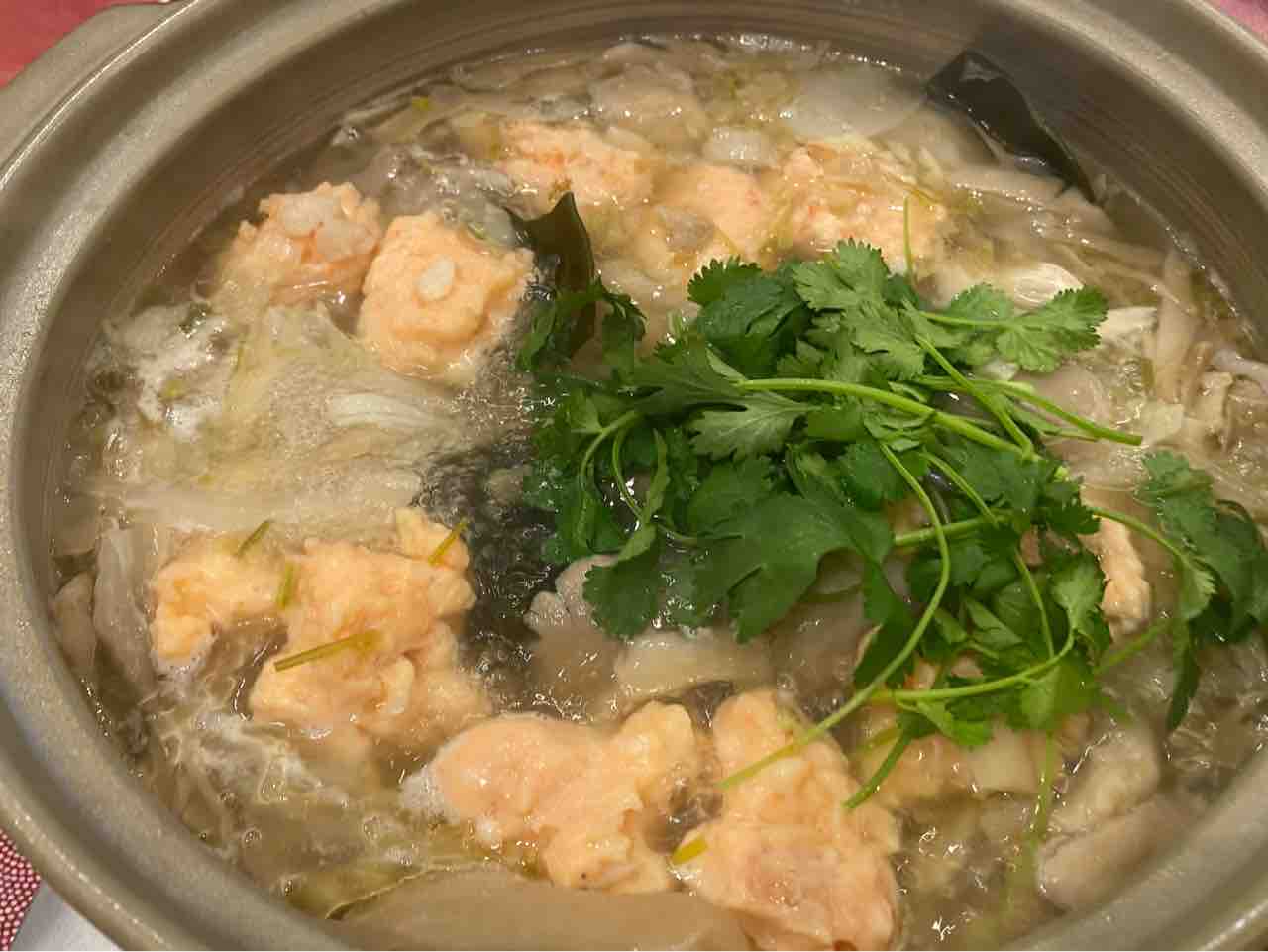 チーズ入り里芋団子鍋、菜花入り~😍。良人が暑い国から冬デリー入りだったので、帰印翌日は「為・お腹あったか~鍋」にしました。
