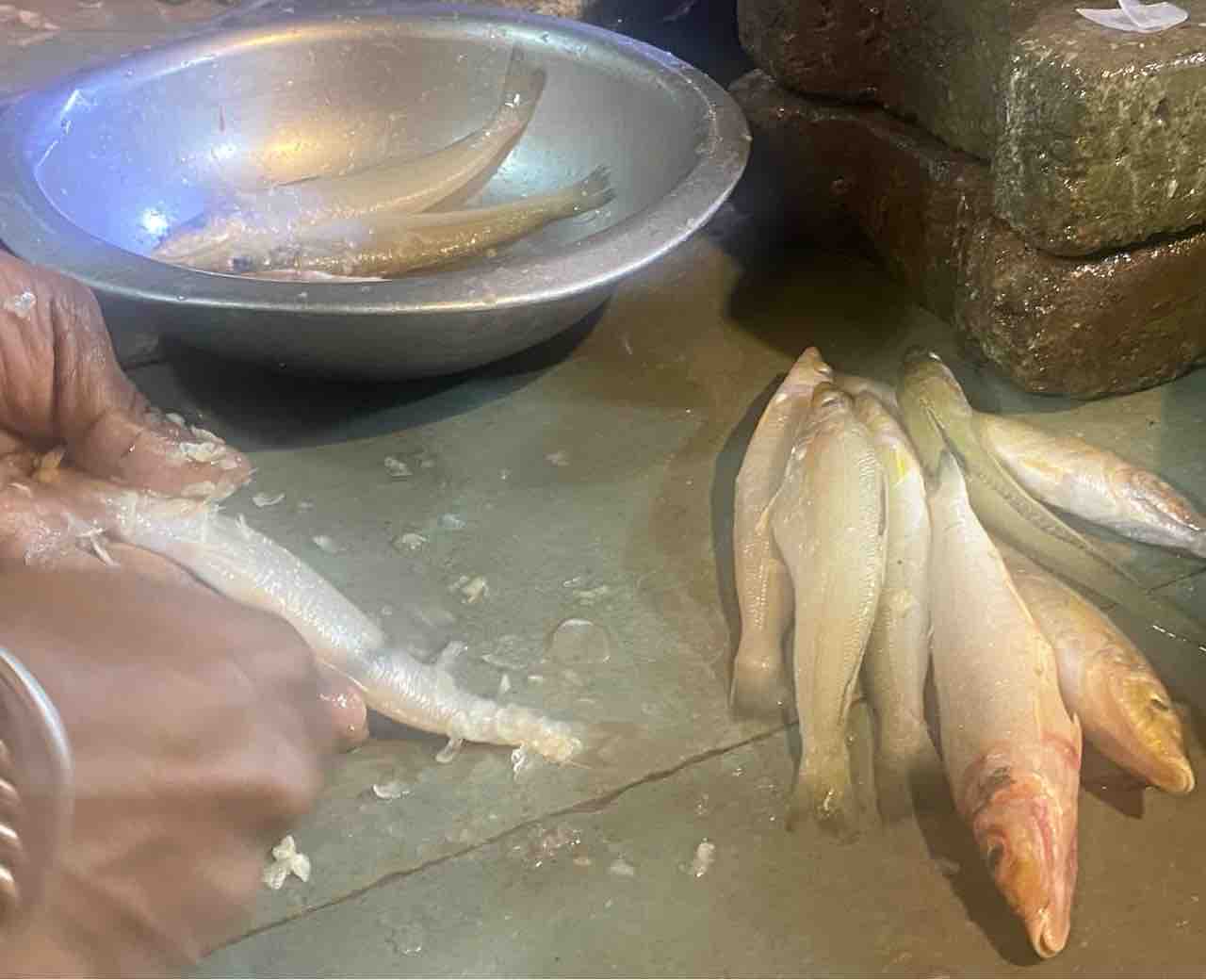 お値段もお財布に優しく、1.5キロをツアーメンバー6、7人で分ける(昔の生協みたいで楽し😆)ことにしたら、一人5尾が150ルピー‼︎