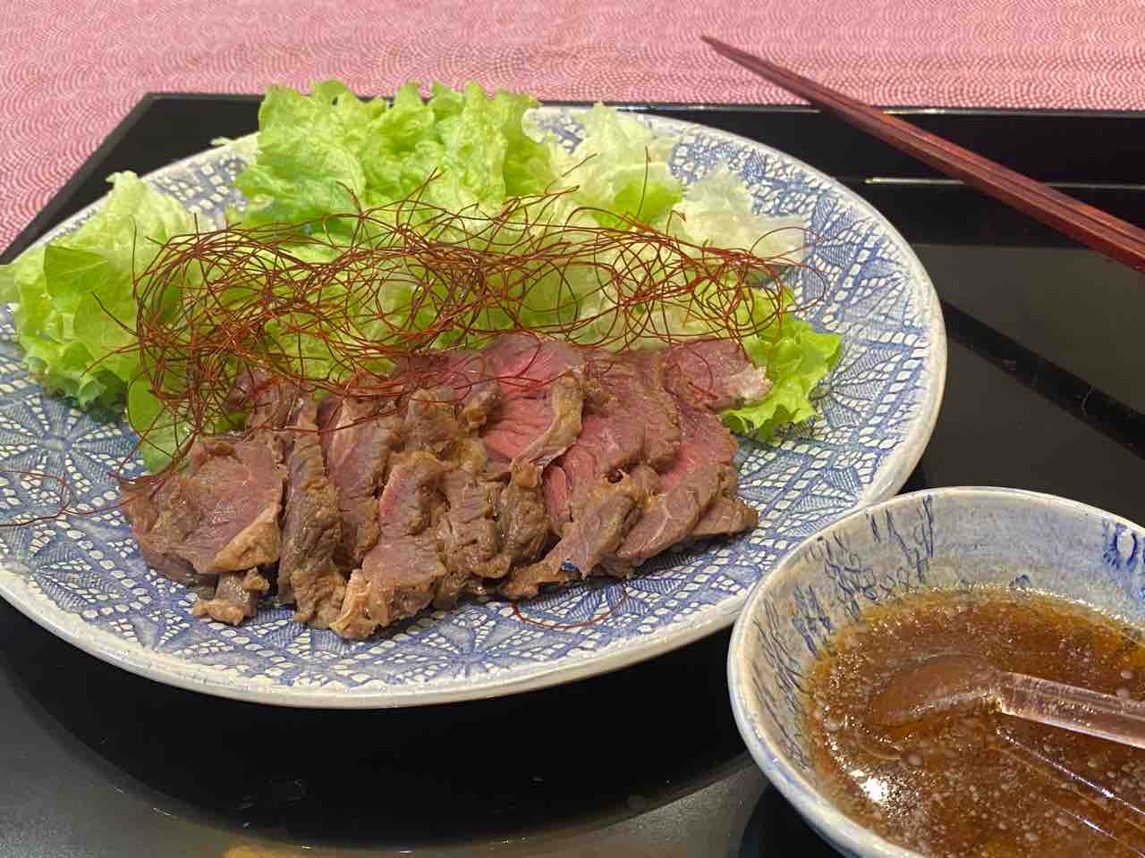 つけダレは、タヒーニ(胡麻ペースト)にニンニクを入れ、味醂・酒・薄口醤油・塩でテキトーに味付けした二番だしで溶きました。
