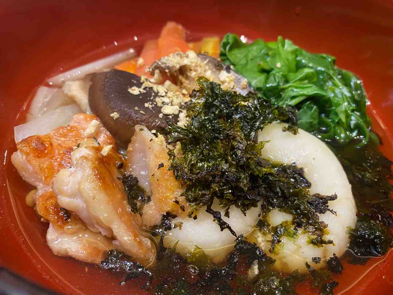 お刺身で食べられるお魚をちょっとだけ焼いて、お野菜と一緒に、胡麻ダレを出汁で溶いたつけダレで頂きます。