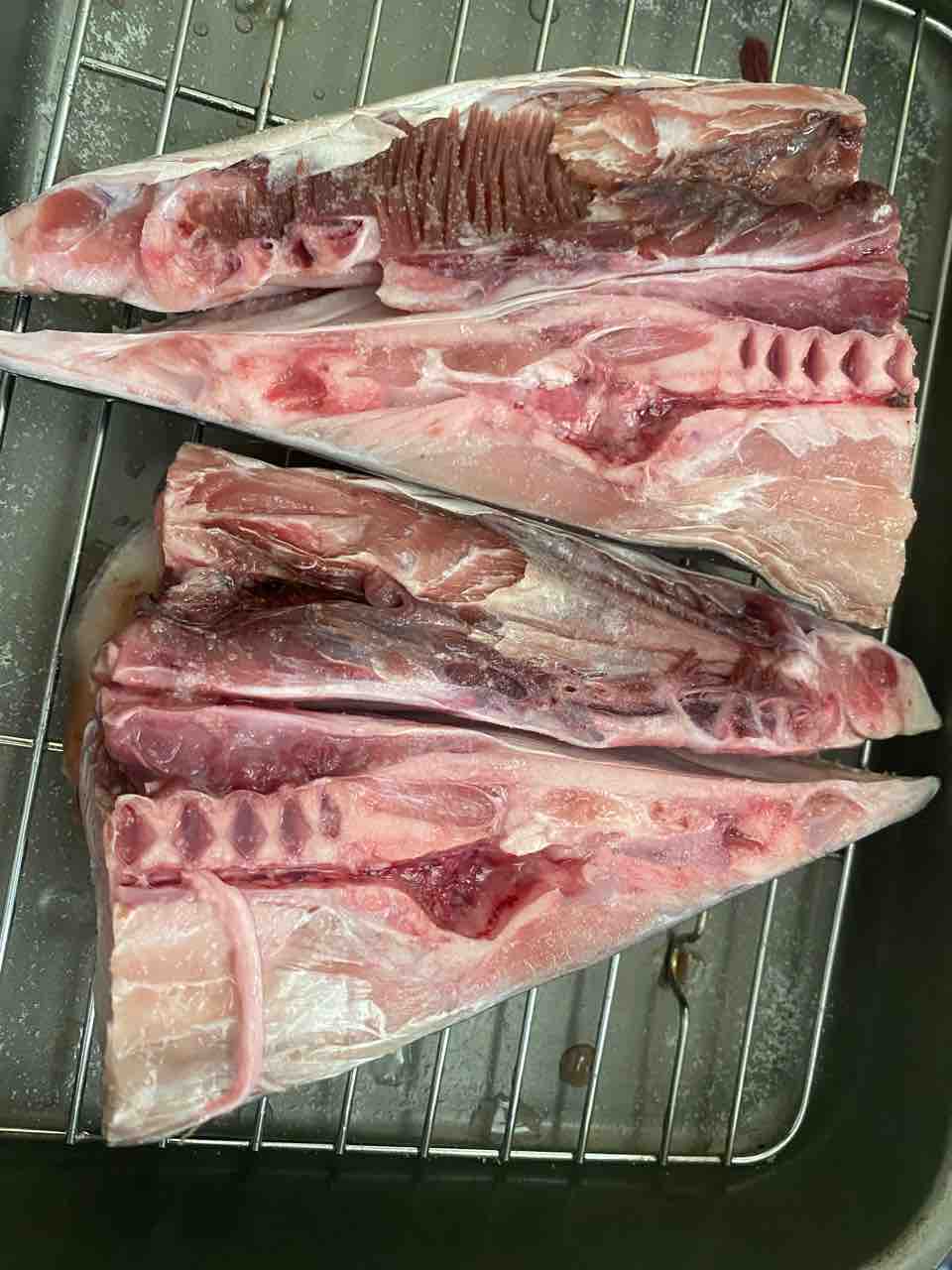 目が赤くないのを2尾で900ルピー。3枚に降ろして贅沢にしゃぶしゃぶに。