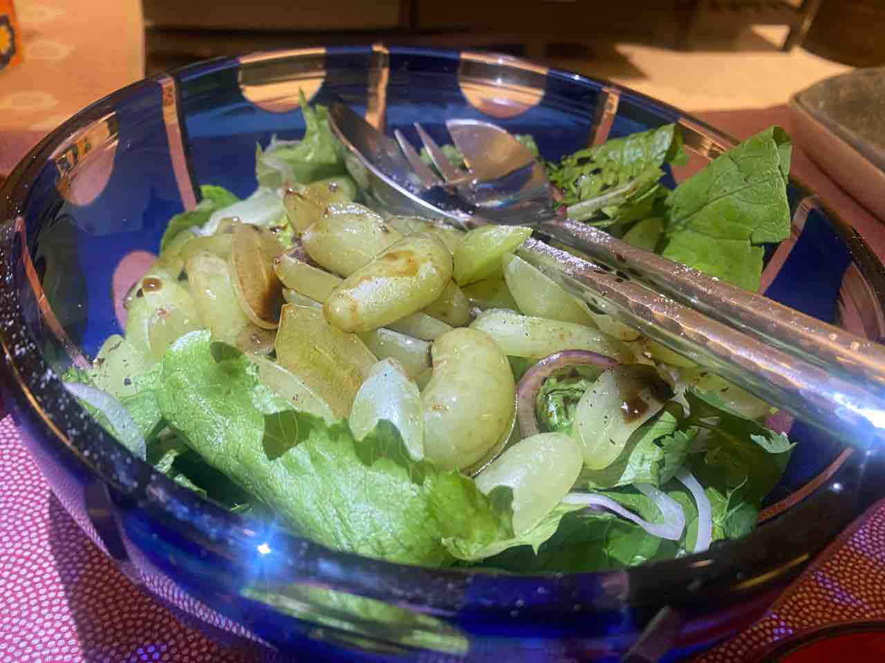 私は、サラダをワシワシ食べますが、夫はレタスだけを先に、取り除くように食べ、最後にバルサミコオリーブオイルの絡んだトマトさんのブドウだけを大事に食べます。
