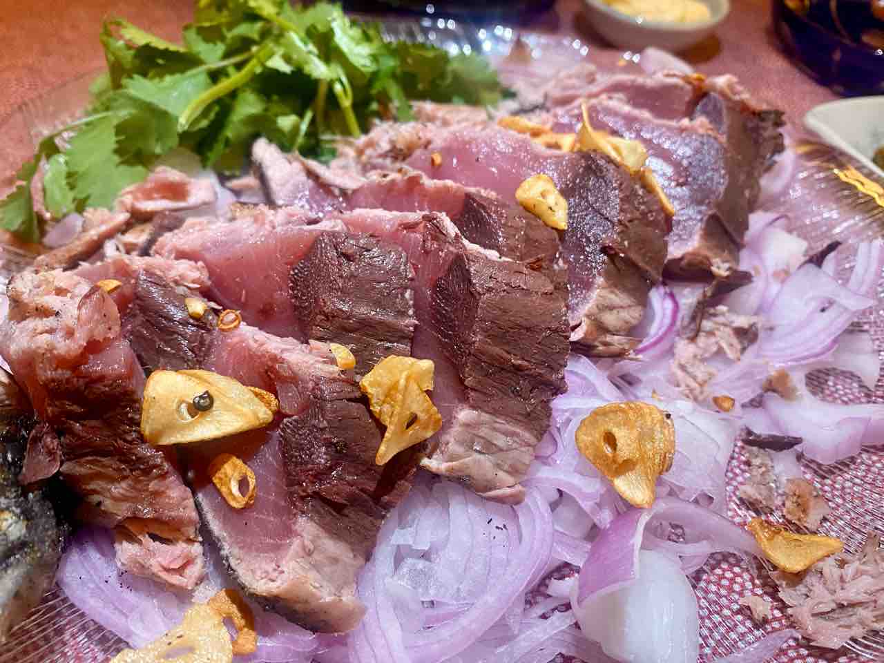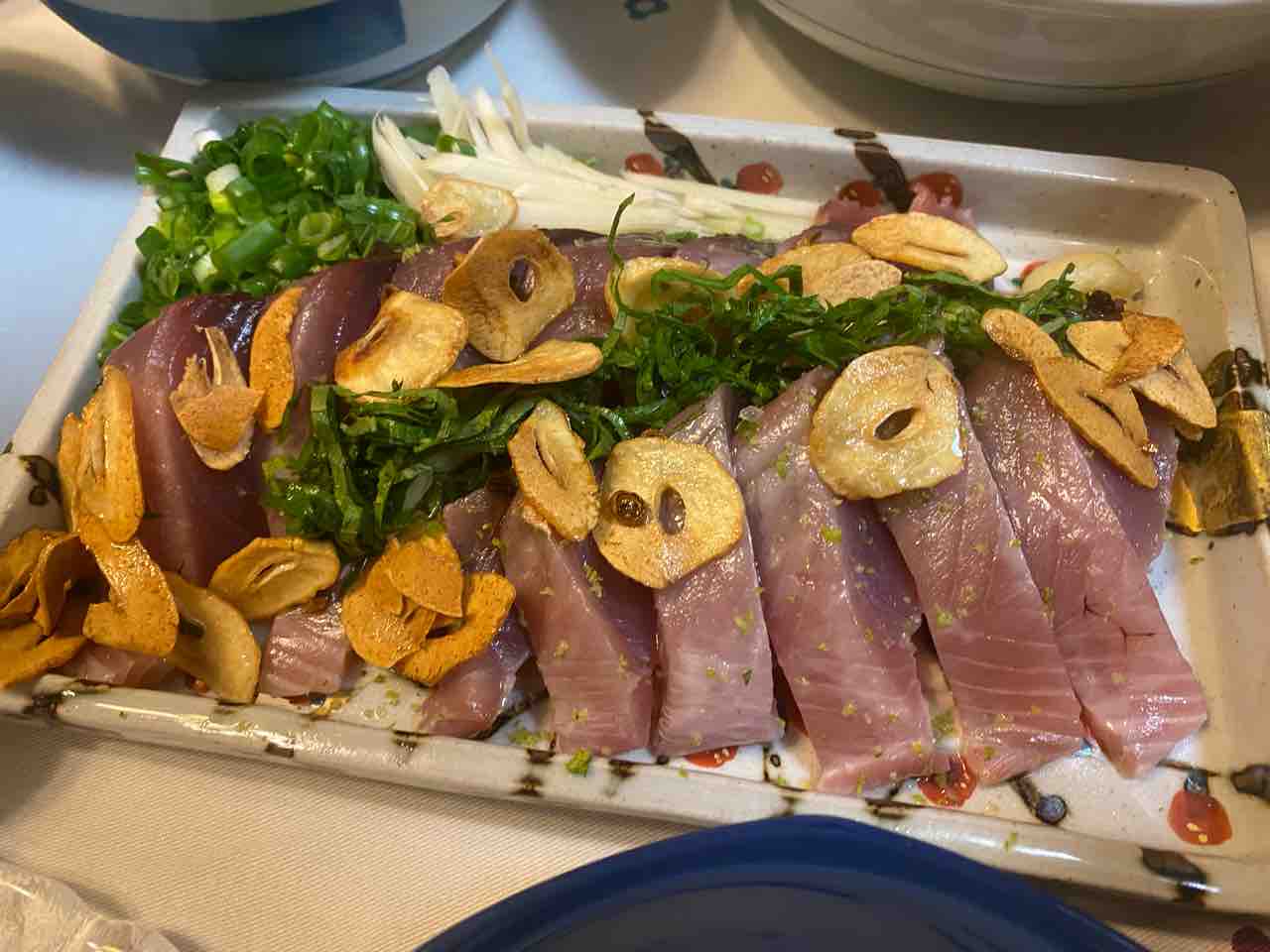 ナンプラー+ニンブーは、タイに住んでいた時に思いついたつけだれです。タイのフジスーパーにTunaと書かれたカツオが常にあり、安価だったので良く購入しました。インドよりスーパー便利な国だったけど、日本ほどお刺身の選択肢がなかったので行き着いた、味変つけだれでした😆。当時はナンプラー+マナオ(タイのレモン)。