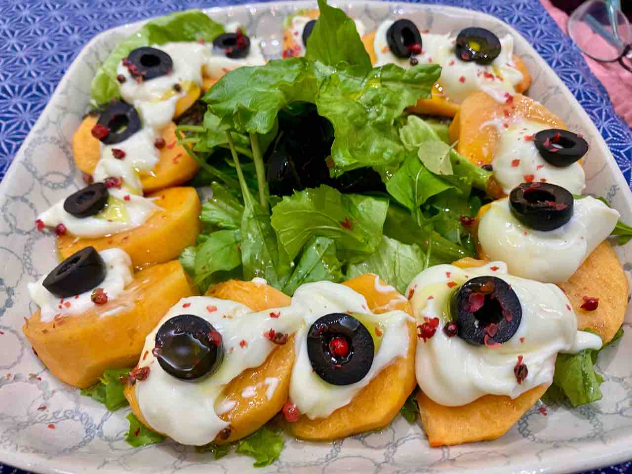 トマトさんの柿は、マスカルポーネをのせて、デザートとして😉。