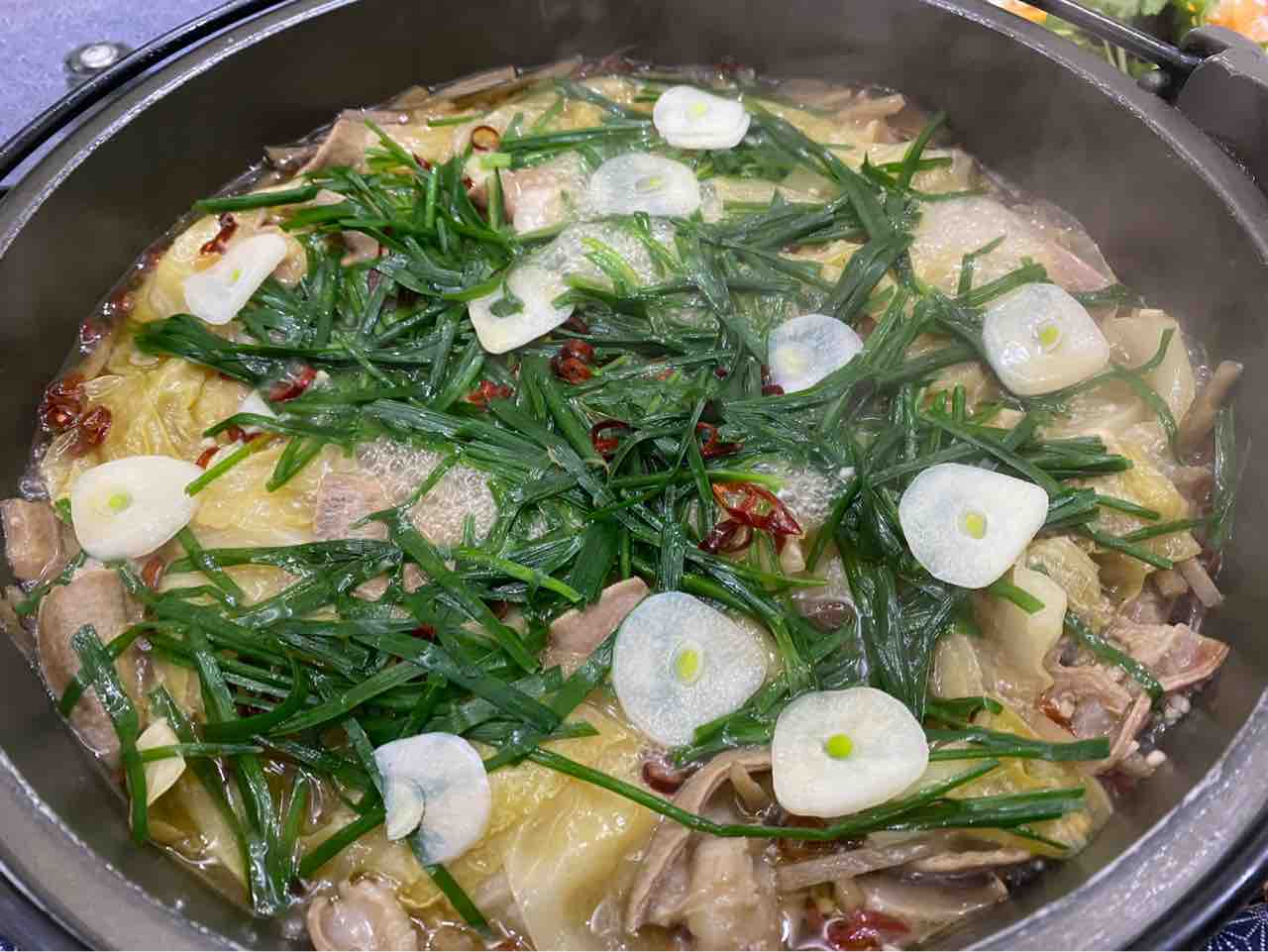 モツ鍋味付けは、味覇+白だし、すこうし醤油の簡単レシピ。すりおろしニンニクたっぷりのスタミナ鍋です。