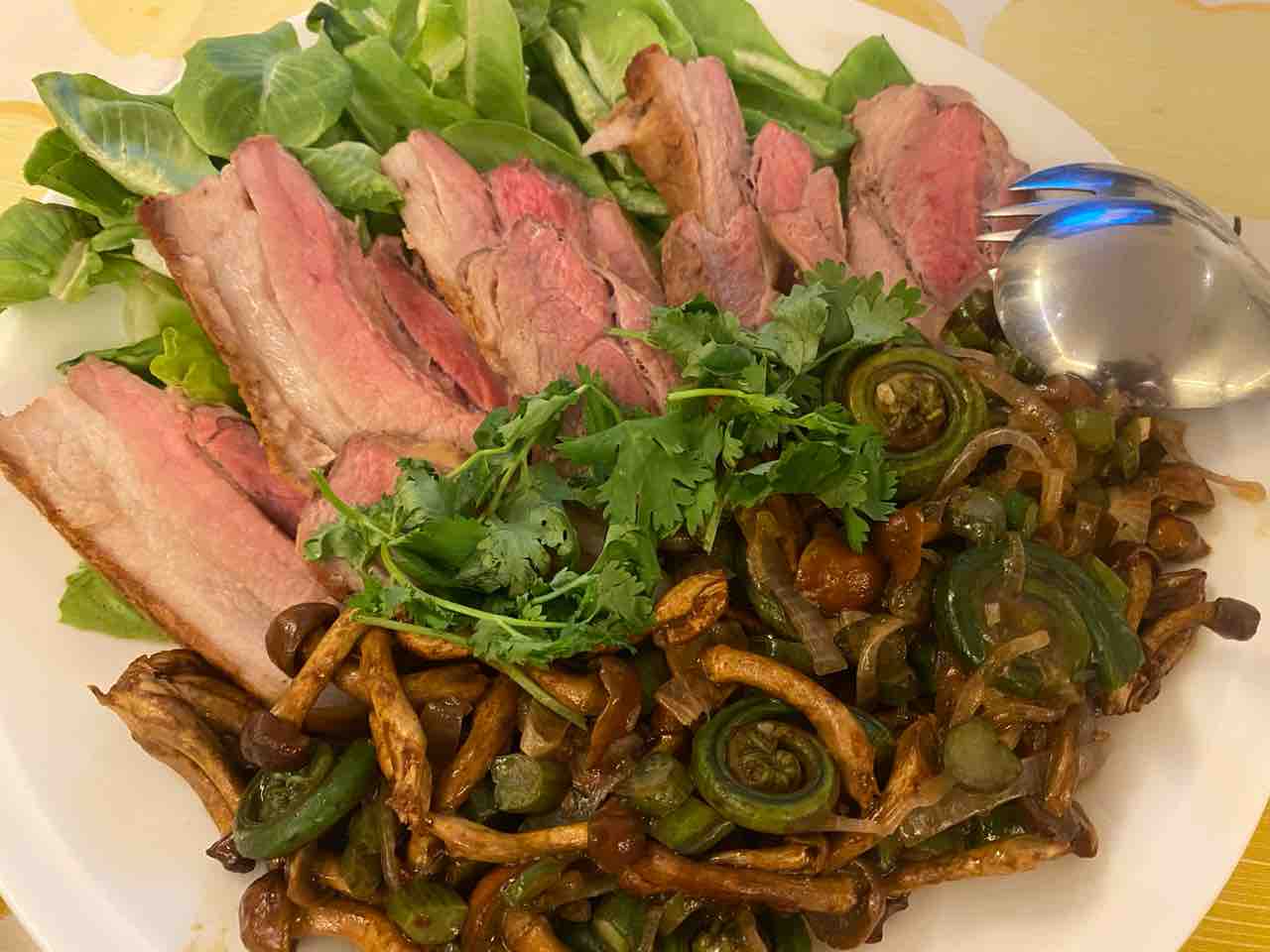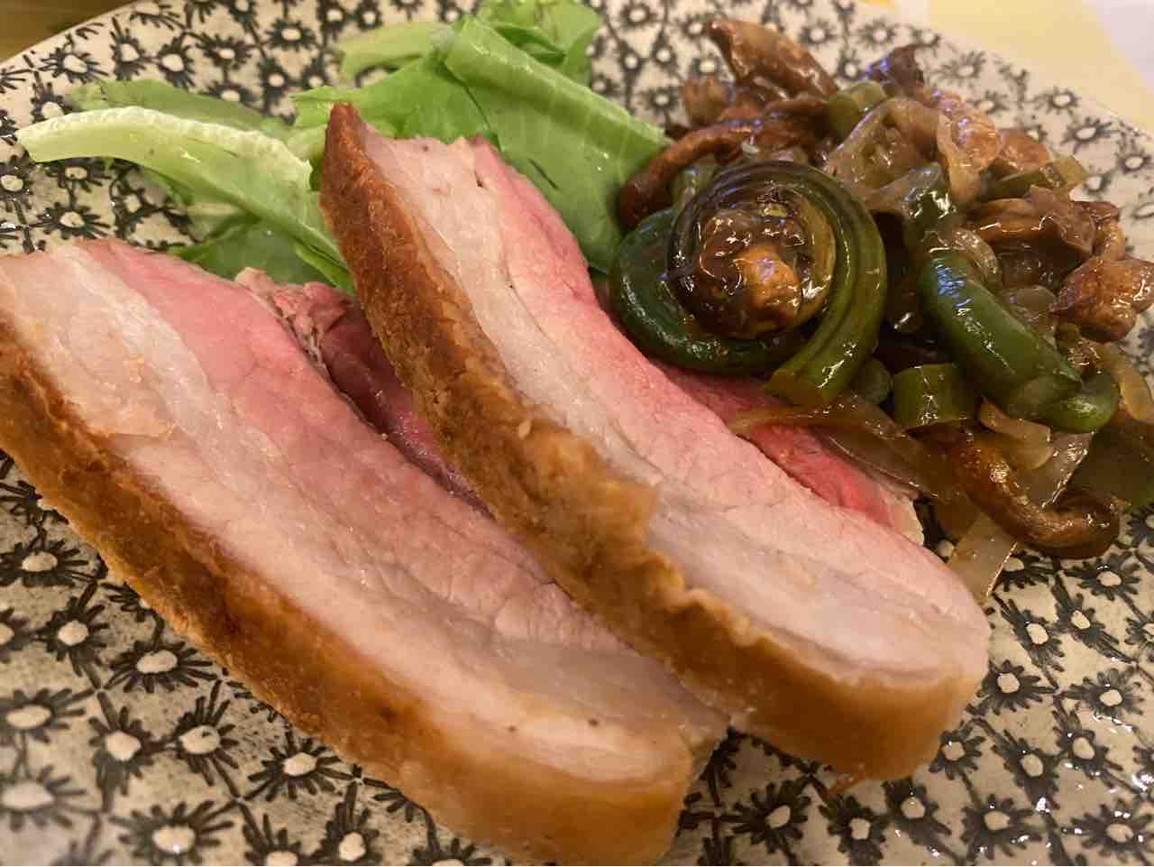 同じくNature’s Shop で購入した豚バラ塊をカリカリ塩焼きにして、なめこと一緒に山菜付け合わせにして、頂きました。