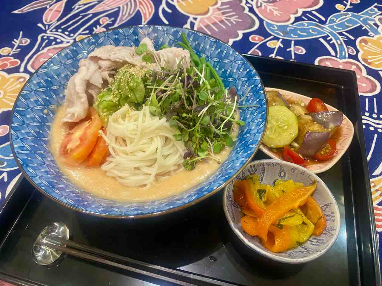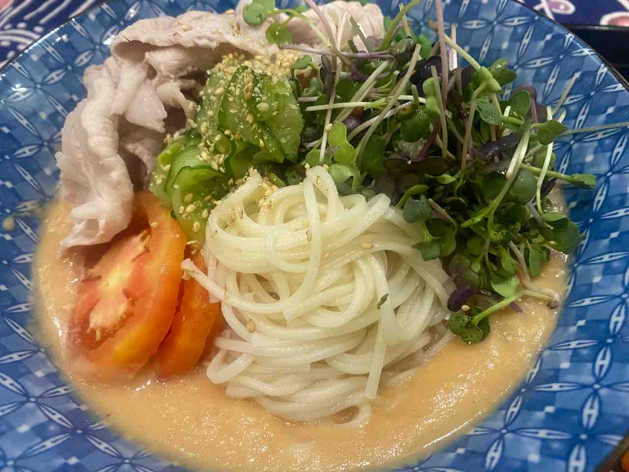 あとは茹でて冷水で締めたおうどんと、好きなものをのせるだけです。