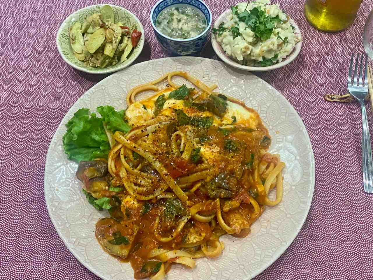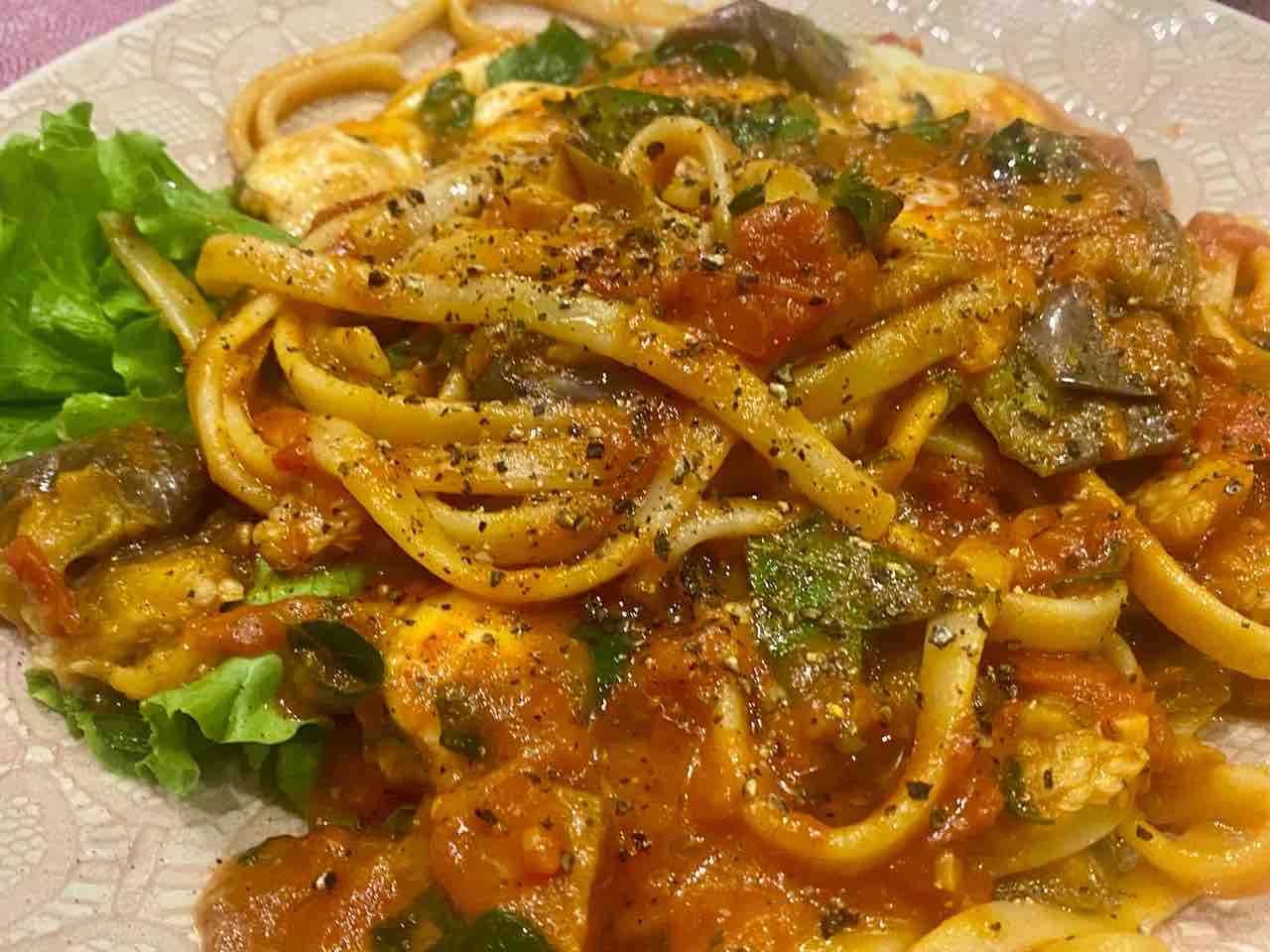 茄子とトマトのパスタ