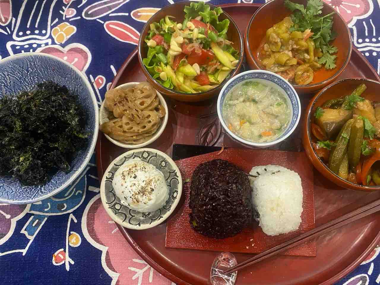一昨日のパスタソースの残りをカリーグレービーにしました。ハーブを昨日のバジリコからカレーリーフに変えただけで、なんとな~く南インドな感じ🤗。