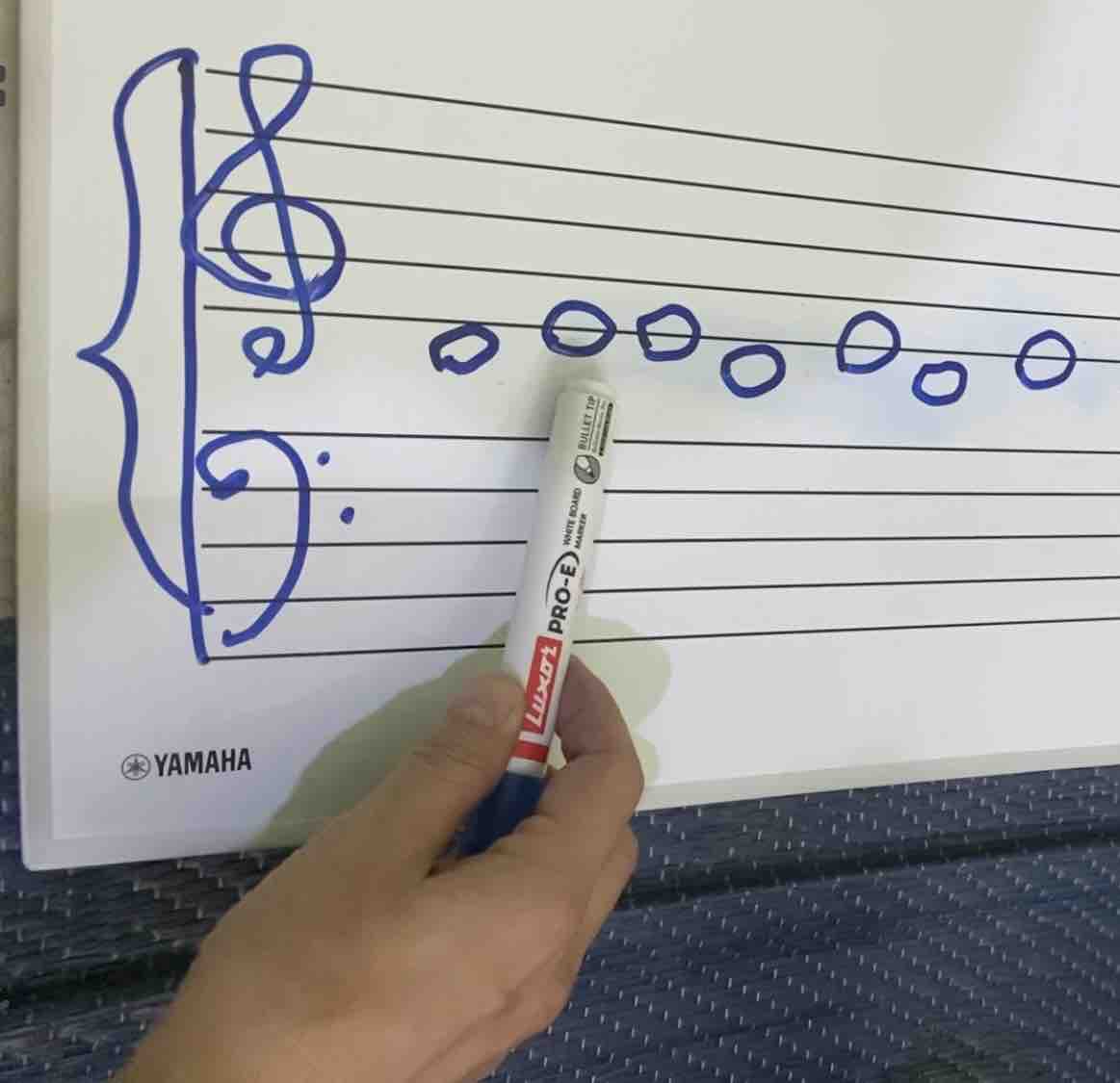 ここから少しずつ音符を書く勉強をし、いずれ、書いた音と、鳴っている音、また自分が出している声の音が同じであることを認識させていくのです。