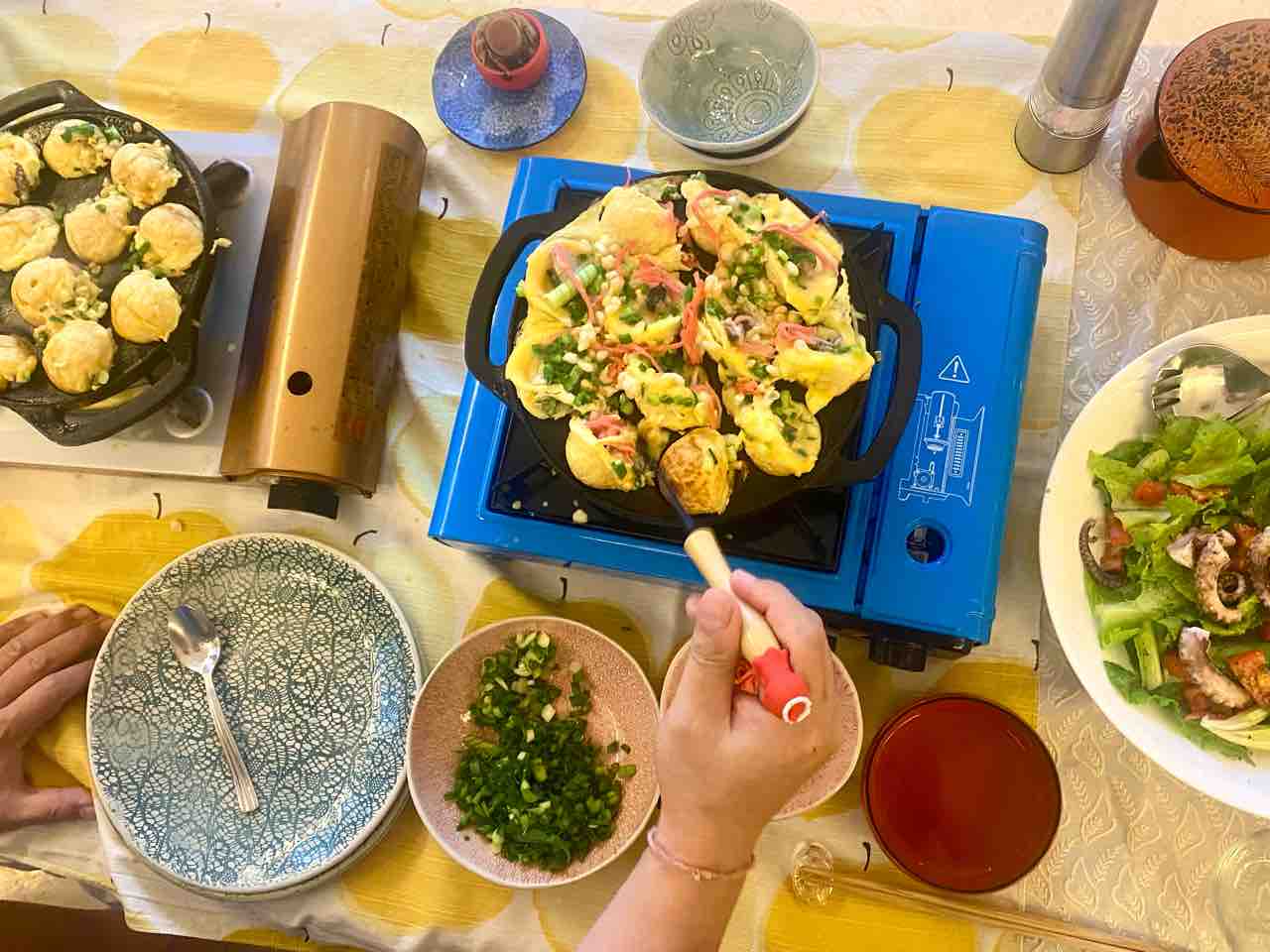 夫婦でいただいた色粉をつけっこして、平和に家の中でお祝いしました。明石焼きは、ふわとろで旨かった~。夫が焼いてくれたので2025年夫料理第4弾。