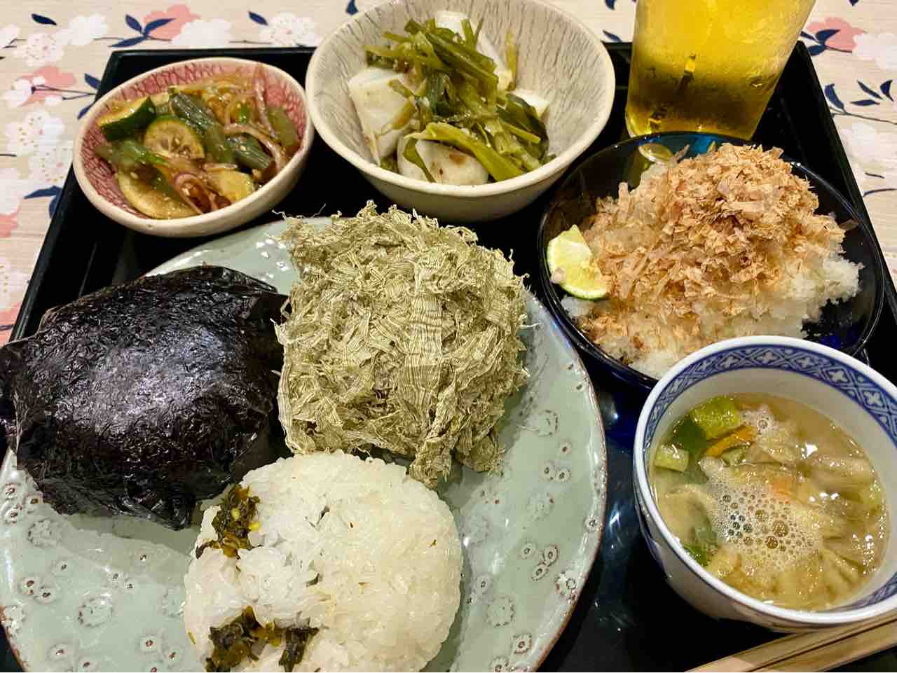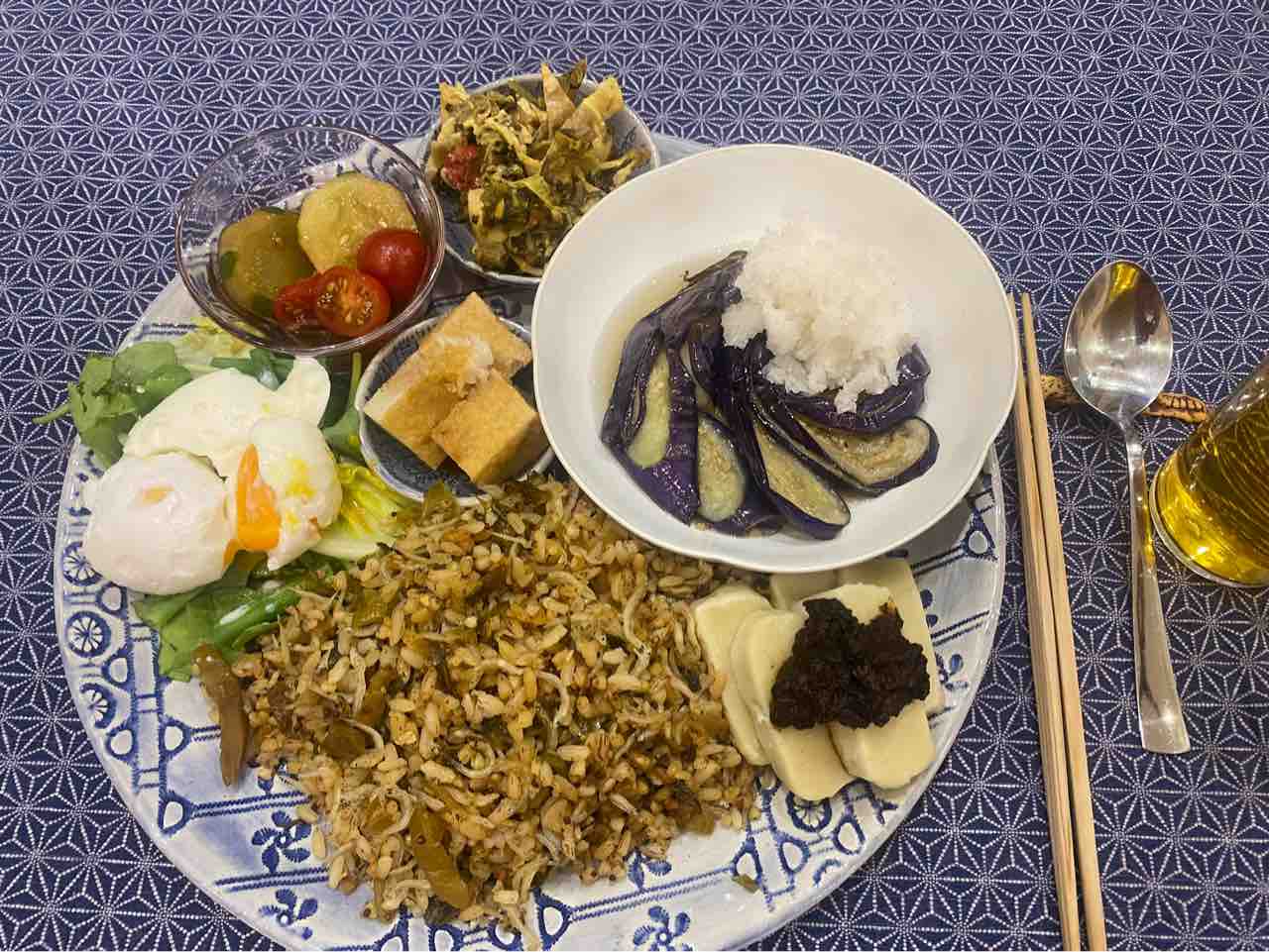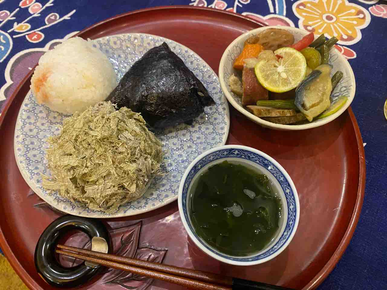 おむすびの具は明太子、辛高菜、そして友人が今年つけた昔ながらの塩梅15パーセントの梅干し。買えないものが結局贅沢だなぁとしみじみ。