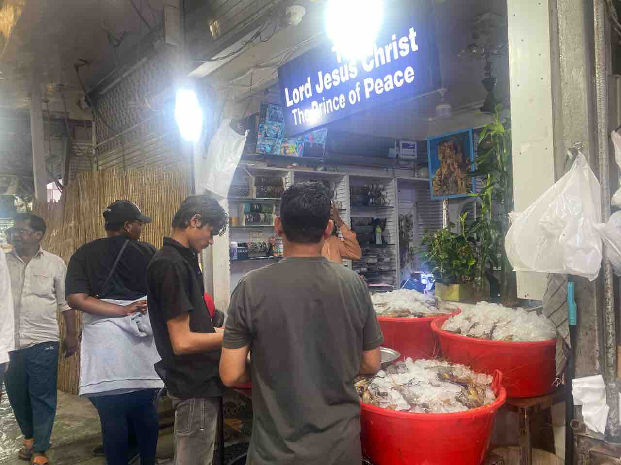 顔見知りの魚屋でエビ1キロ900ルピーとふっかけられた。まけても800という。