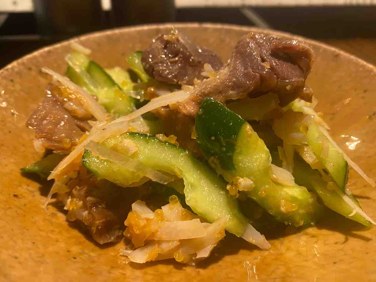 といえば、砂肝ときゅうりのサラダが美味しかった。ここには薄く切ったヤゲンが入っていて楽しかった。ヤゲン入りはできない(デリーの鶏屋さんヤゲンあったっけ)ど、砂肝きゅうりは出来る☺️。一軒呑んだら、おうちごはんのレシピひとつ獲得。